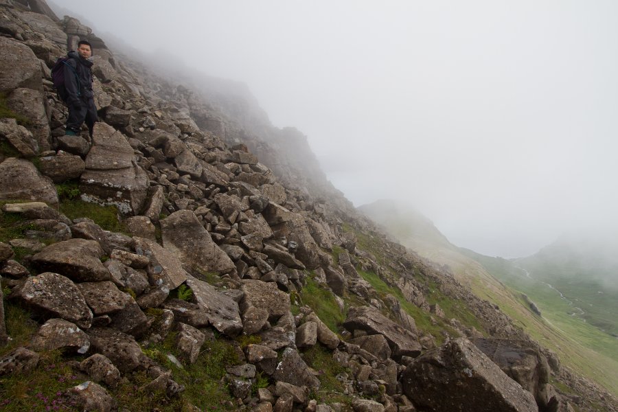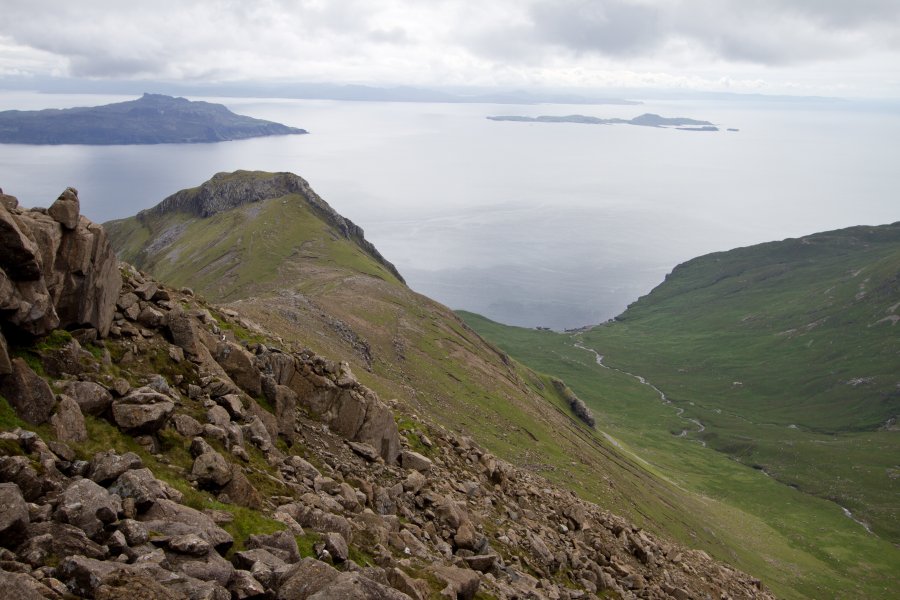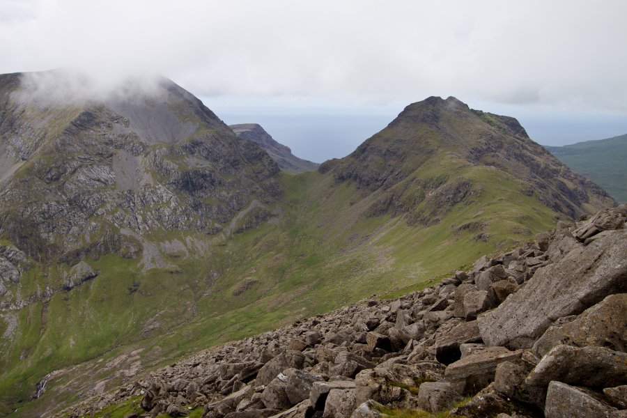 following the track around the south eastern side of askival. this then leads to some route finding as its not that obvious an ascent and some simple scrambles