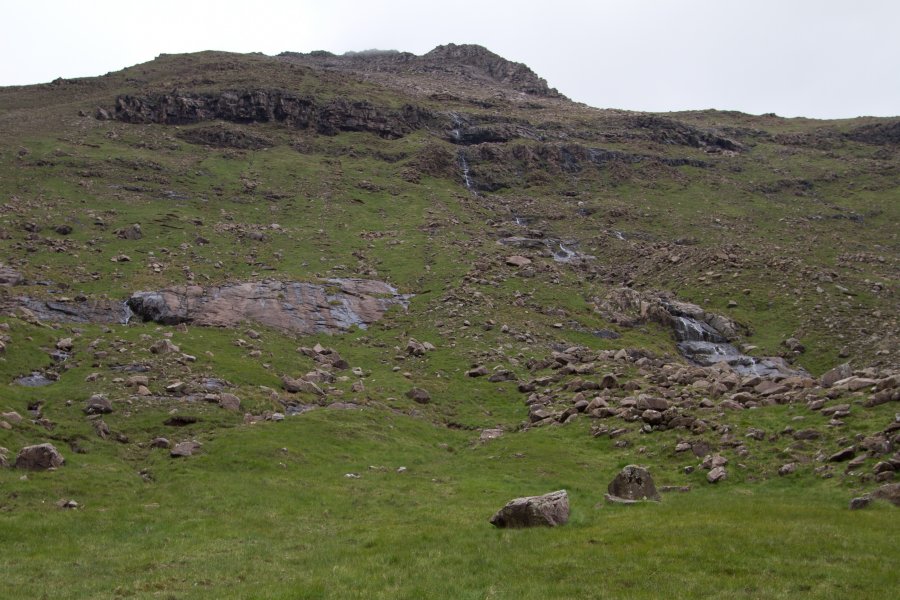 looking back up the steep face. Tired legs after that. The worst bit had to be the cliff about half way up. looking at it now, maybe the far right would have been best to go around it