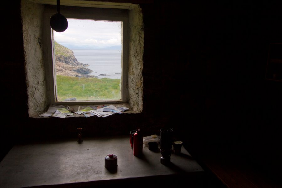 The Isle of Eigg and a deep fissure leading down to the sea. Warning signs in the bothy suggest keeping clear of the fissure. we didn't get close.