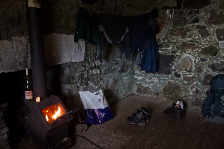Soup time for Alan at Dibidil bothy. Didnt see anyone for a few hours and then our friend Steve came walking through the door. He had spent an extra night at the Guirdil bothy and then spent his day on some of the other peaks