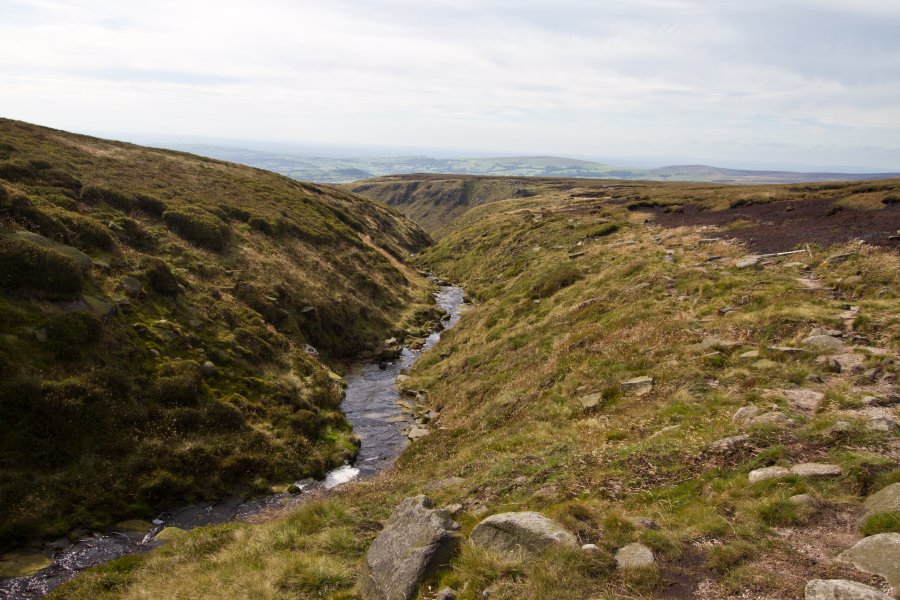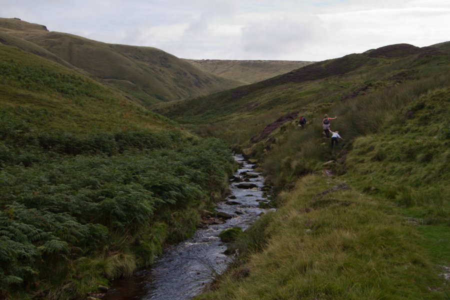 AFTER A WANDER AROUND THE DEBRIS WITHOUT TOUCHING ANYTHING, WE MADE OUR WAY ACROSS THE ROUGH BLEAKLOW LANDSCAPE WHICH CONSISTS OF DEEP PEAT GROUGHS AND BOG. AT HERN STONES WE ADJUSTED OUR BEARINGS AND BOG HOPPED OUR WAY TO YELLOW SLACKS BY FOLLOWING YELLOWSLACKS BROOK. OUR ORIGINAL INTENTION WAS TO DOWN SCRAMBLE DOWSTONE CLOUGH BUT WE DECIDED TO SAVE IT FOR AN ASCENT ON ANOTHER TRIP IN THE FUTURE. IT DOES LOOK LIKE A CRACKING ROUTE!! i'D LIKE TO SPEND A NIGHT ON BLEAKLOW to SEE IF I COME ACROSS ANY OF ITS MANY GHOSTS. MAYBE I READ TOO MUCH :)