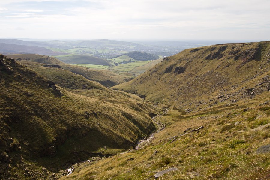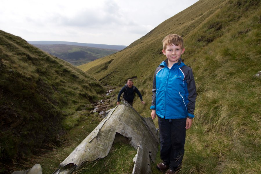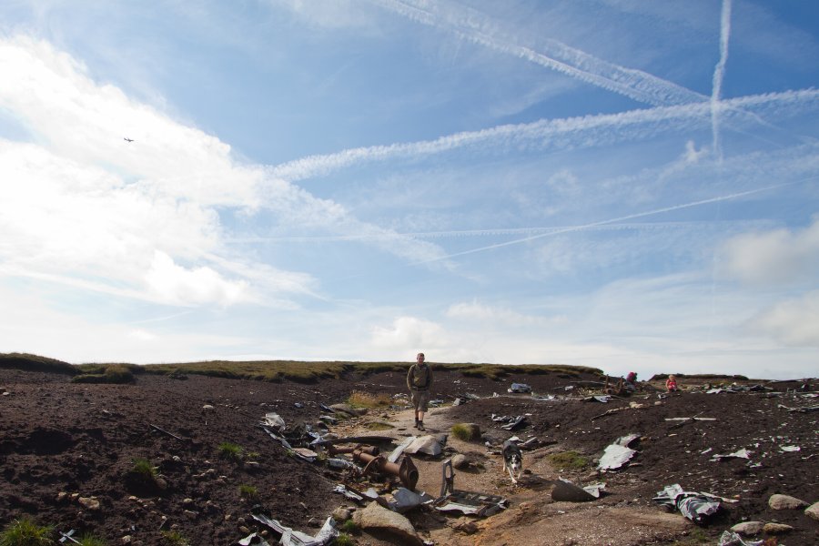 TODAY WE FOLLOWED THE DOCTORS GATE PATH FROM THE EDGE OF OLD GLOSSOP. INSTEAD OF REACHING THE PENNINE WAY, WE CUT LEFT A KM BEFORE IT AND SCRAMBLED UP ASHTON CLOUGH. THE INITIAL VIEW TO THE CLOUGH LOOKED PRETTY STEEP BUT LIKE A LOT OF ROUTES, IT WASNT REALLY THE CASE ONCE COMMITTED TO IT. THE SCRAMBLE STARTS OUT WITH GENTLE ROCK HOPPING AND A COUPLE OF SMALL WATERFALLS TO CLIMB. WE PASSED A FEW SMALL PIECES OF AIRCRAFT DEBRIS FROM A CRASH IN THE 1940'S THAT HAD BEEN SWEPT DOWN THE GULLY BY FLOOD WATER. ABOUT 3 QUARTERS OF THE WAY UP IT SPLITS INTO TWO GULLIES. WE CHOSE THE RIGHT ONE WHICH WAS A SCREE FILLED SHOOT OF LOOSE BOULDERS AND SLABS. WE TOPPED OUT NEAR LOWER SHELF STONES, MADE OUR WAY OVER TO HIGHER SHELF STONES FOR A SANDWICH AT THE TRIG POINT AND THEN VISITED THE REMAINS OF ANOTHER (LARGER) AIRCRAFT CRASH SITE NEAR BY (CHECK THE PHOTO COMMENTS FOR MORE DETAILS) IT'S A SAD AND ERRY SCENE and bLEAKLOW HAS SEVERAL PLANE WRECKAGES SCATTERED ACROSS ITS PLATEAU.
