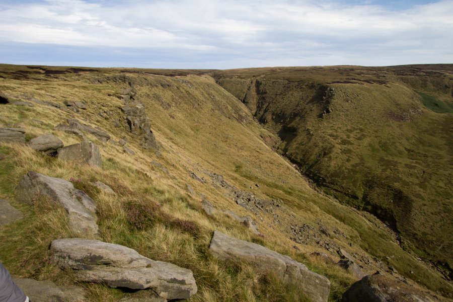FLICKING THROUGH THE PAGES OF 'SCRAMBLES IN THE DARK PEAK' HELPED CREATE TODAY'S ROUTE. I HIGHLY RECOMMEND THIS BOOK FOR ALL THOSE WHO WANT TO SCRAMBLE IN ENGLAND! I CHOSE A ROUTE THAT HAD SCRAMBLING WITH SEVERAL LARGE POINTS OF INTEREST. THE LAST TIME I VISITED BLEAKLOW, I WAS ON MY OWN IN WEATHER FITTING OF ITS NAME. TODAY IT WAS SUNNY WITH JUST ENOUGH WIND TO KEEP US FROM SWELTERING. ONE OF THOSE CLOUDY, DECEPTIVE DAYS WHEN YOU GO HOME WITH A PINK NECK.