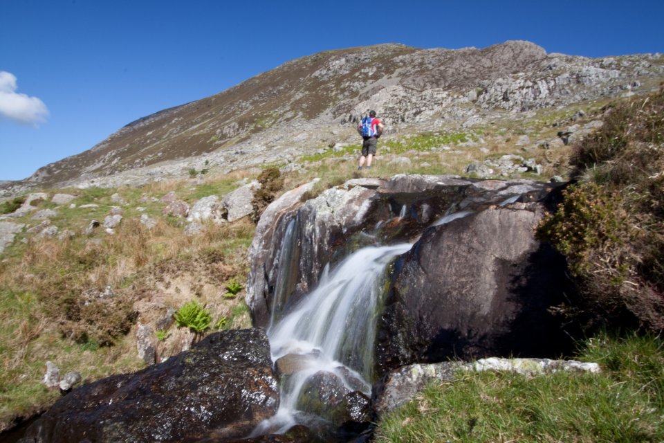Looking down the Cwm Pen-Llafar valley from the ridge