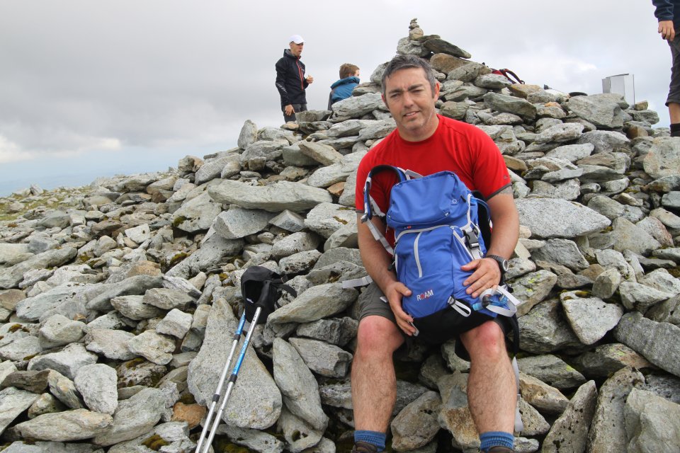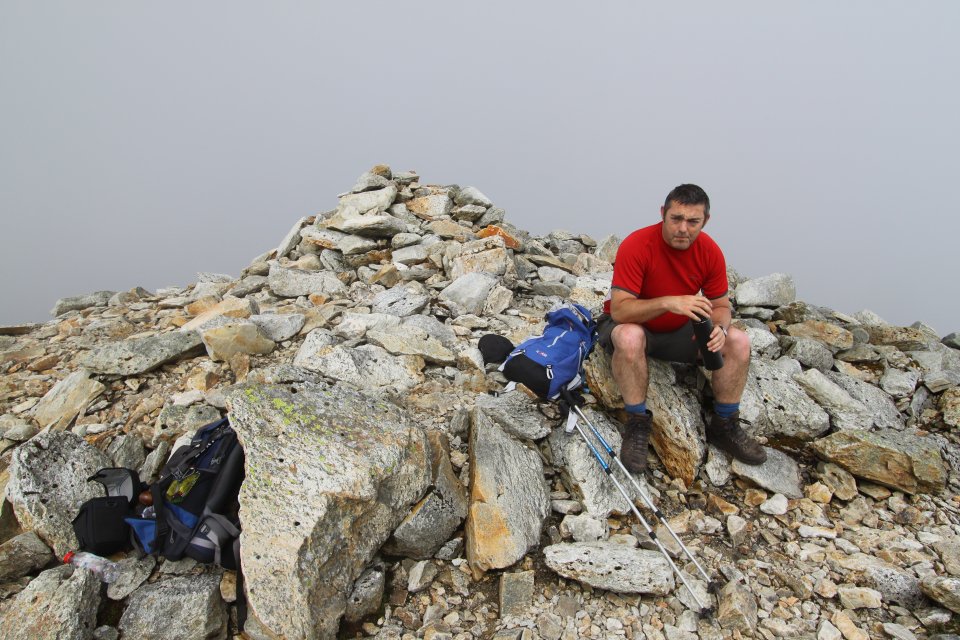 Geordie on the summit of Carnedd Dafydd (1044m)