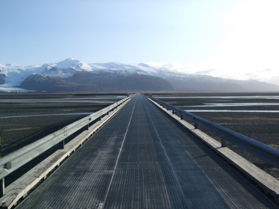 1km Bridge. A previous one was destroyed when the volcano under the icecap in the background send water and icebergs down the Sandar obliterating it.
