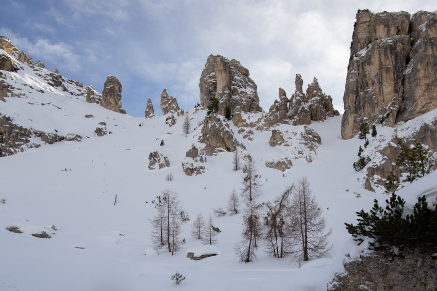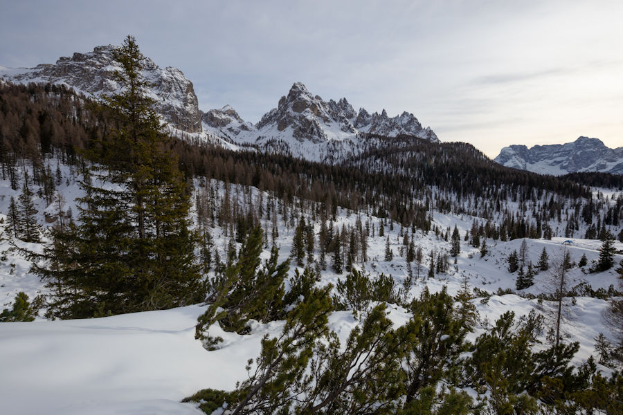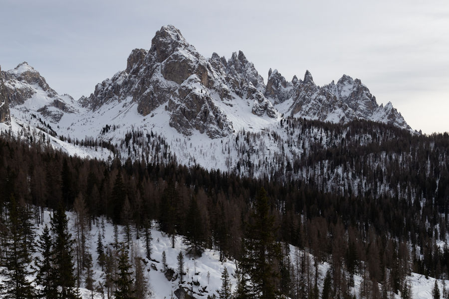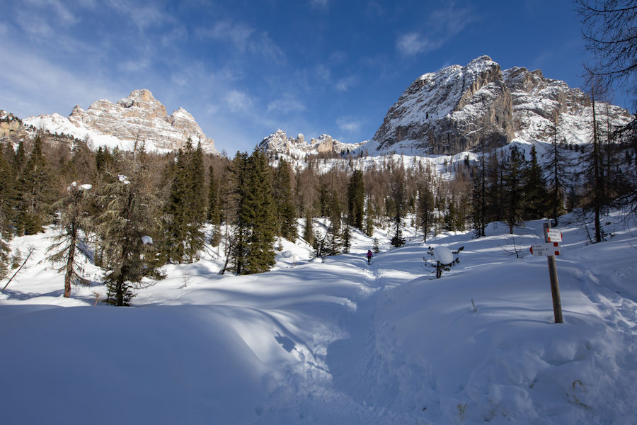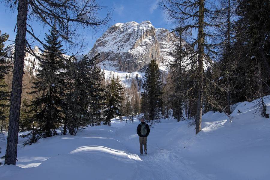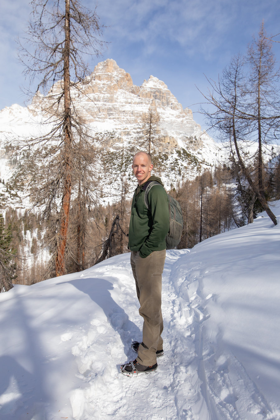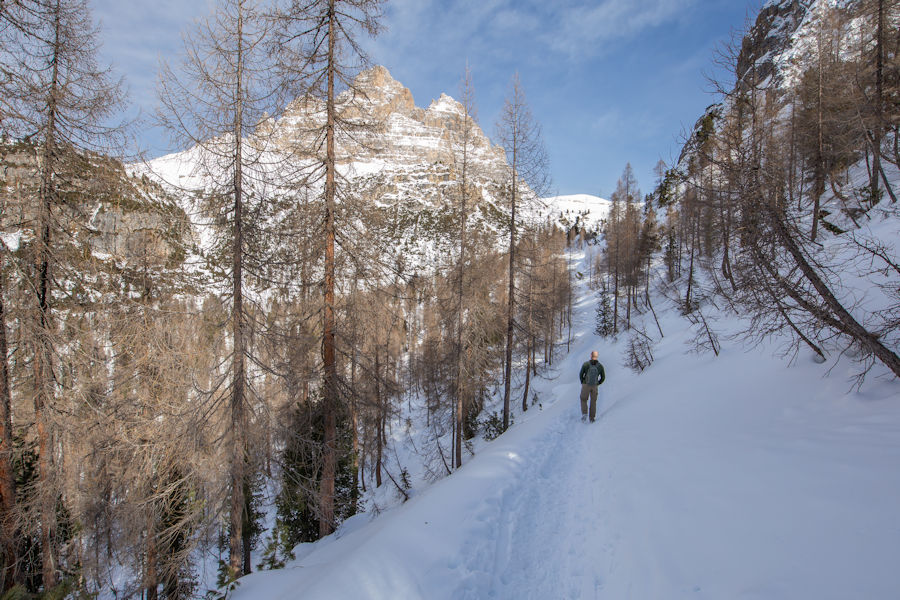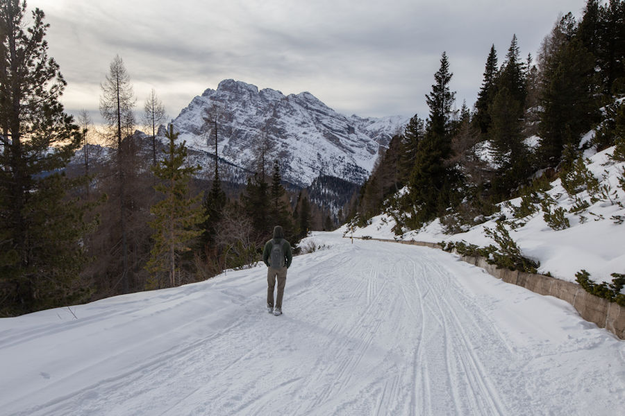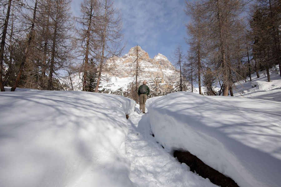 OnCE WE ARRIVED, SURROUNDED BY SNOW, WE SET OFF IN THE DIRECTION OF RIFUGIO AURONZO, A PLACE WHICH SEEMED TO HAVE SOME POPULAR HIKING. It didn't take long to realize that yaktrax were no match for the snow and that snowshoes would really be essential. Too late now, we were out there, away from it all.