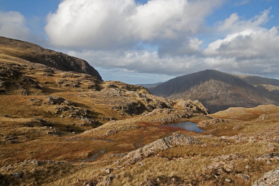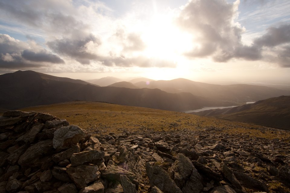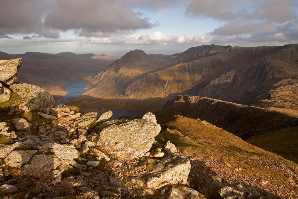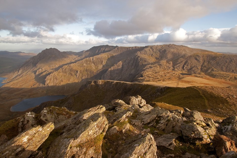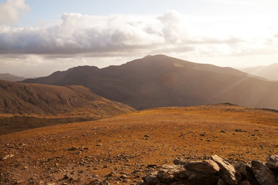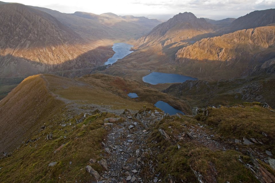 Snowdon's summit poking up in the background. Crib Goch to the left
