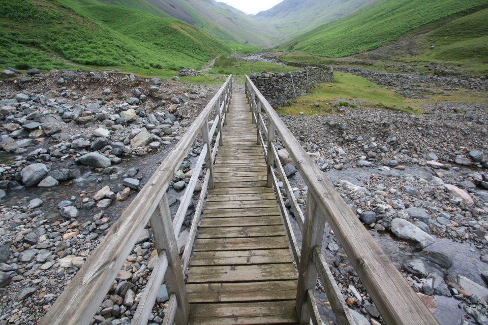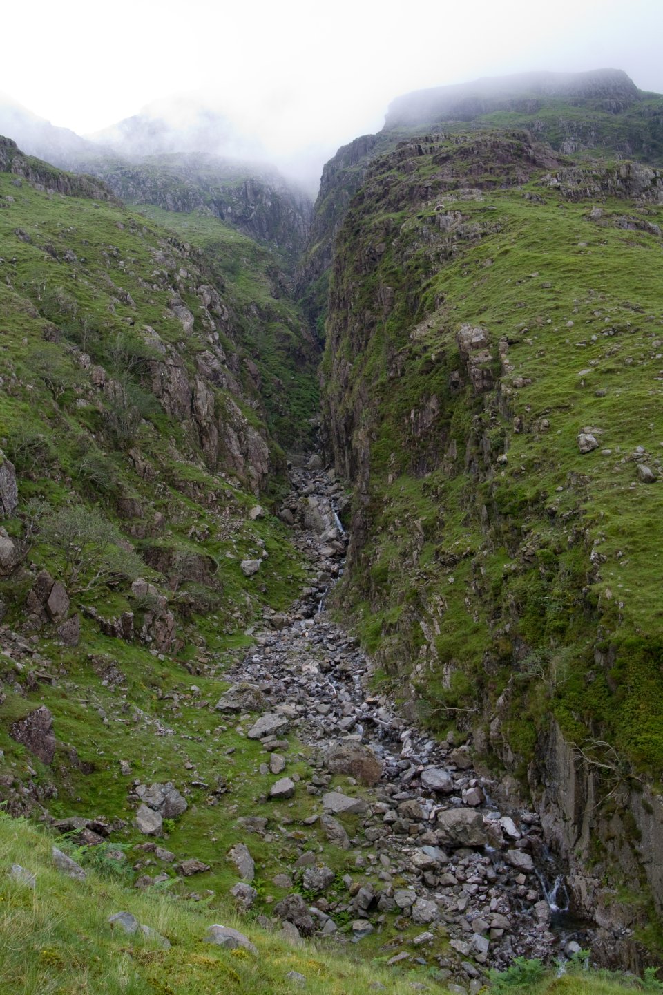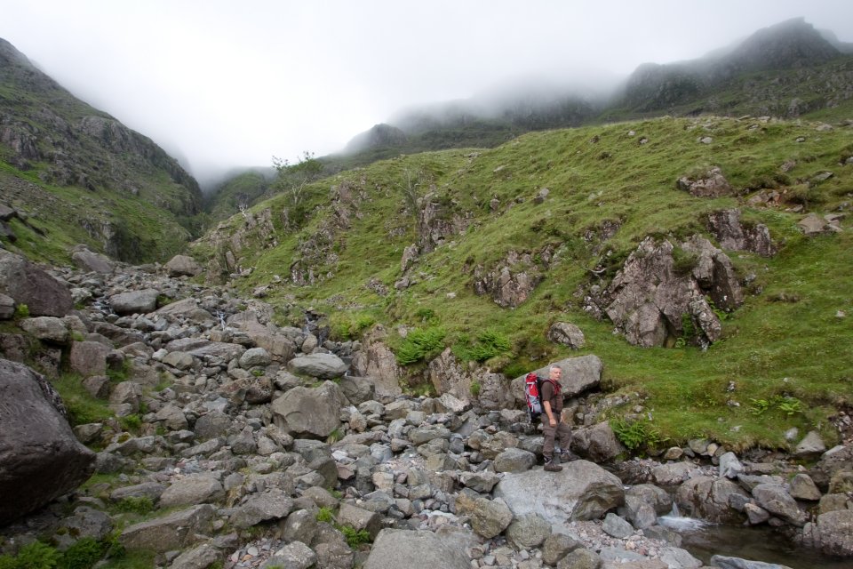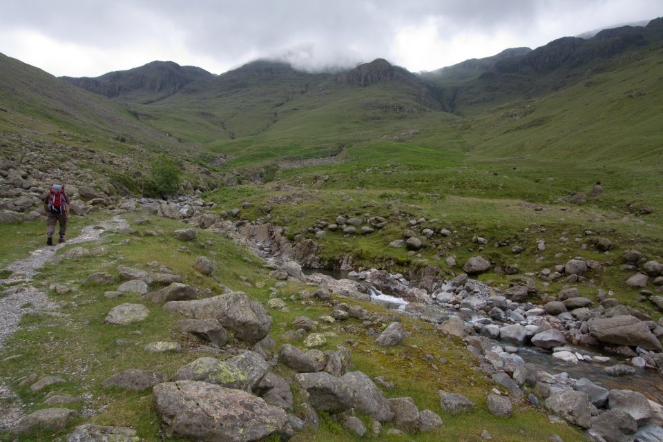 Top of Piers Gill. Walkers from a Portsmouth church completing the Three Peaks to the right.