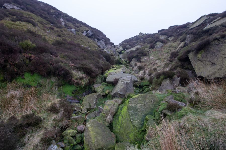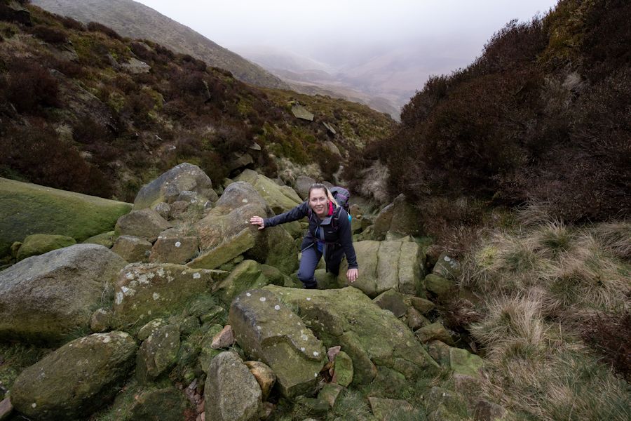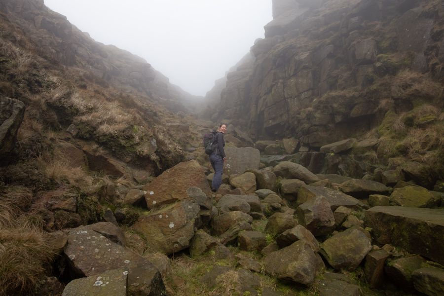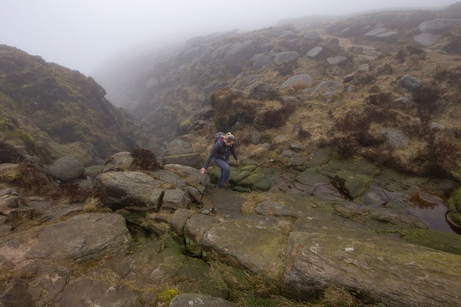 I think this is the best way up onto Kinder. The majority of the approach is away from the crowds, it's beautiful and it's really fun!! The main thing to be wary of though at this time of year is traction. A lot of the photos you will see in these photos are green, which means they are incredibly slippery (ROCK SNOT!). Today the rocks were wet making it even more precarious. What this meant though was we took our time and really enjoyed it. Unfortunately, once we got to the top there wasn't a lot too see due to hill fog so we made a fairly fast descent down Kinder End and back to the car.