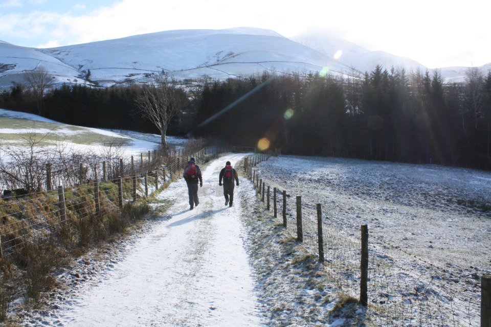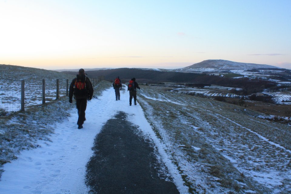 Geordie had issues with the sheets of ice hidden on these paths all day