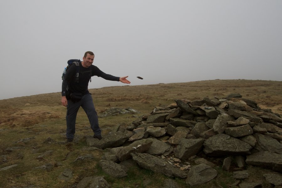 Moel Sych. Andy was pleased to capture this rock in flight at the cairn