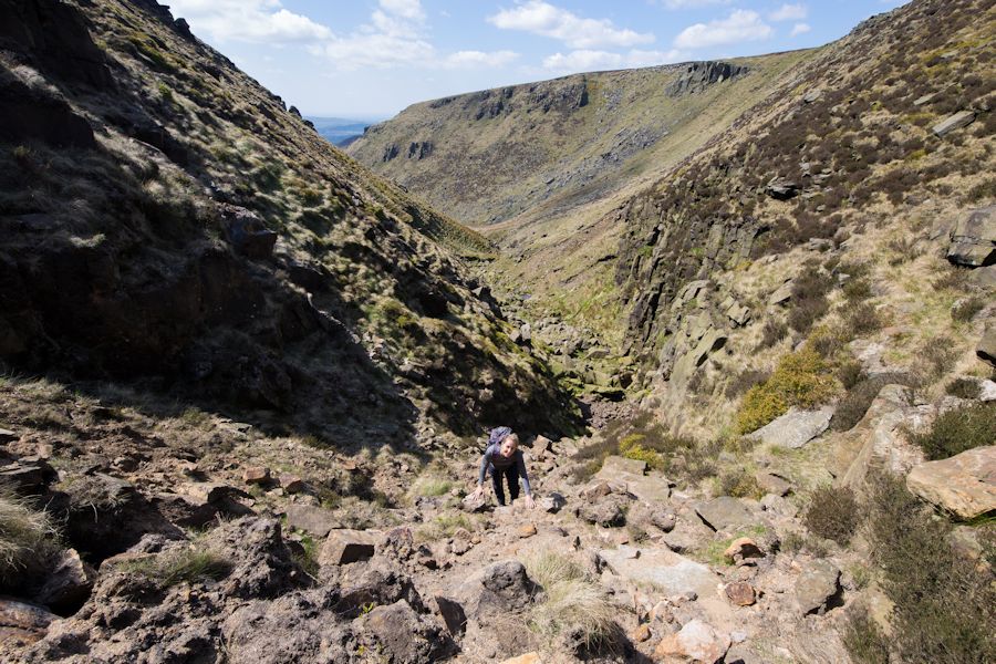 Plenty of times I've been to Bleaklow and looked down into Yellowslacks brook wondering whether it would be a good route to ascend through. Today I found out that it could actually be the best route onto Bleaklow. In terms of navigation it's pretty easy too. Just need to find a good section for dropping into the clough as it's quite steep but then it couldn't be more straight forward. You will see there is a small tricky scramble section over a waterfall that we avoided but apart from that it isn't too challenging. It's a beautiful route onto Bleaklow and a very quiet one too!