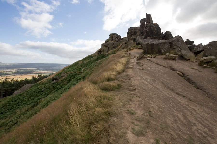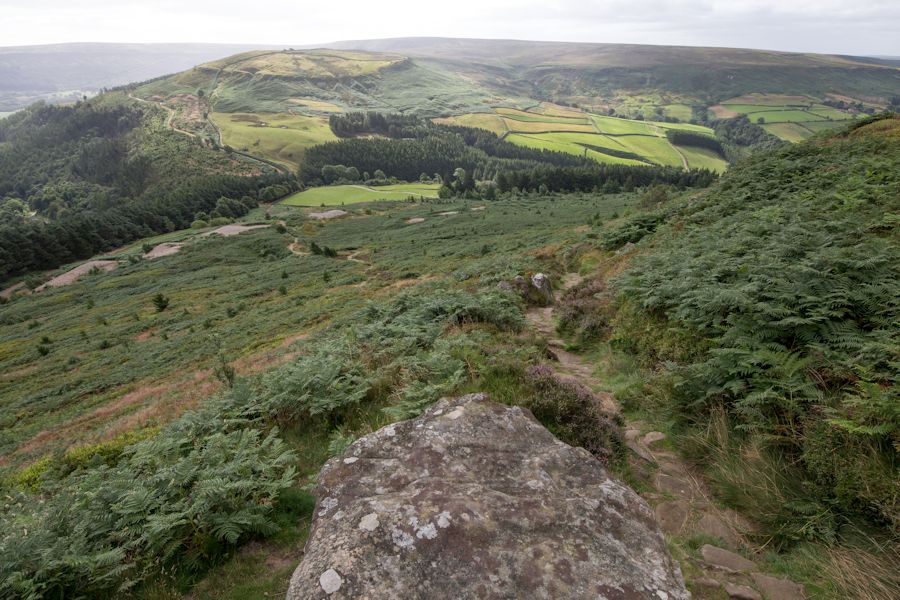 I found this route online and as there weren't that many photos to look at, I really wasn't sure what to expect. The reason I chose this route was because there was one thing i knew i would get and that is something it seems the North yorkshire Moors seems to lack... rock! I set off nice and early and i must have only seen a total of 4 people throughout the walk. Cold Moor was easily crossed apart from some minor bog hopping at the start and then it wasn't long before I was on the Cleveland Way looking out towards rOSEBERRY tOPPING FROM THE EDGE OF THE MOORS. tHE GORGEOUS VIEWS CONTINUED AS I TRAVERSED THE MUCH NEEDED ROCKY ELEMENT THAT IS hASTY bANK. I then descended and crossed over to Urra Moor before arriving back in the village of Chop gate. A great little walk with superb views, moorland and some rock!!