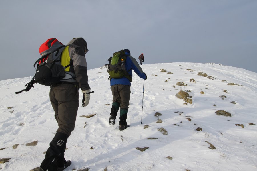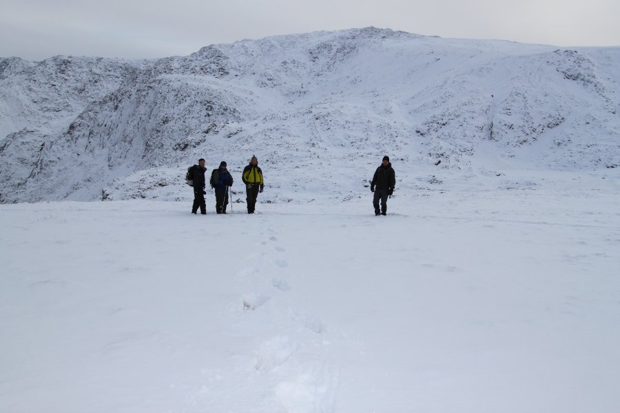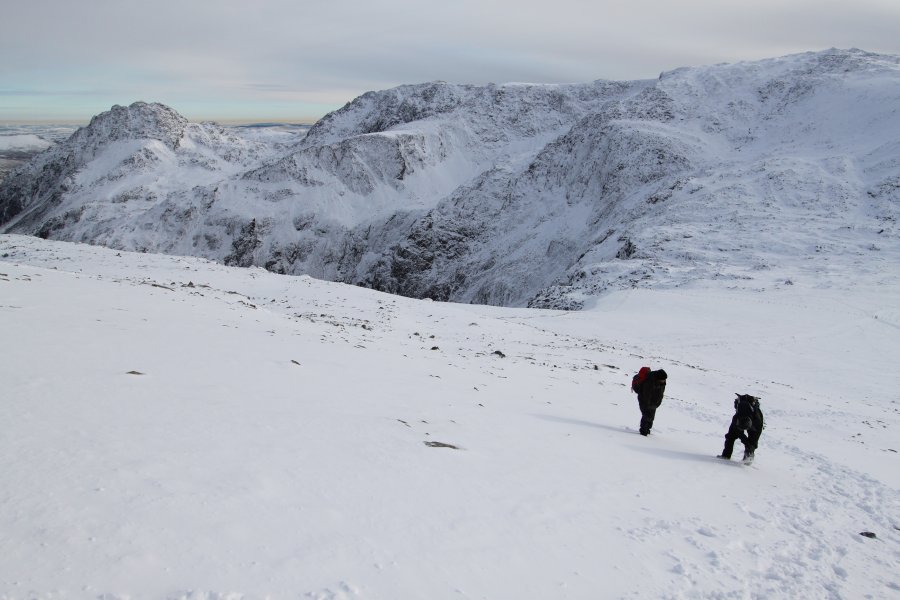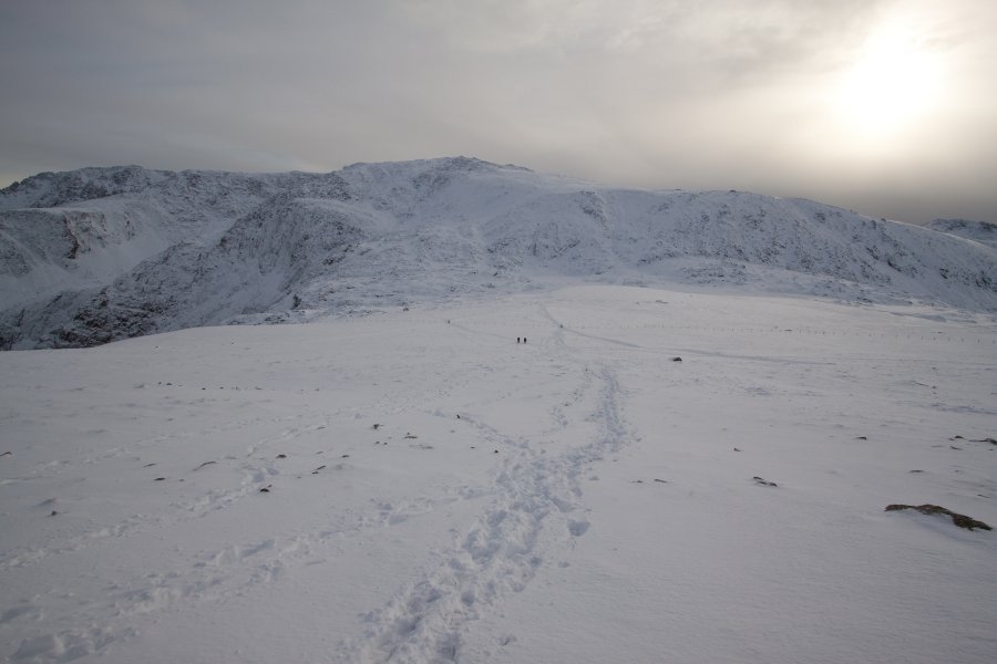 Slow going slog in the deep snow across the top towards Y Garn