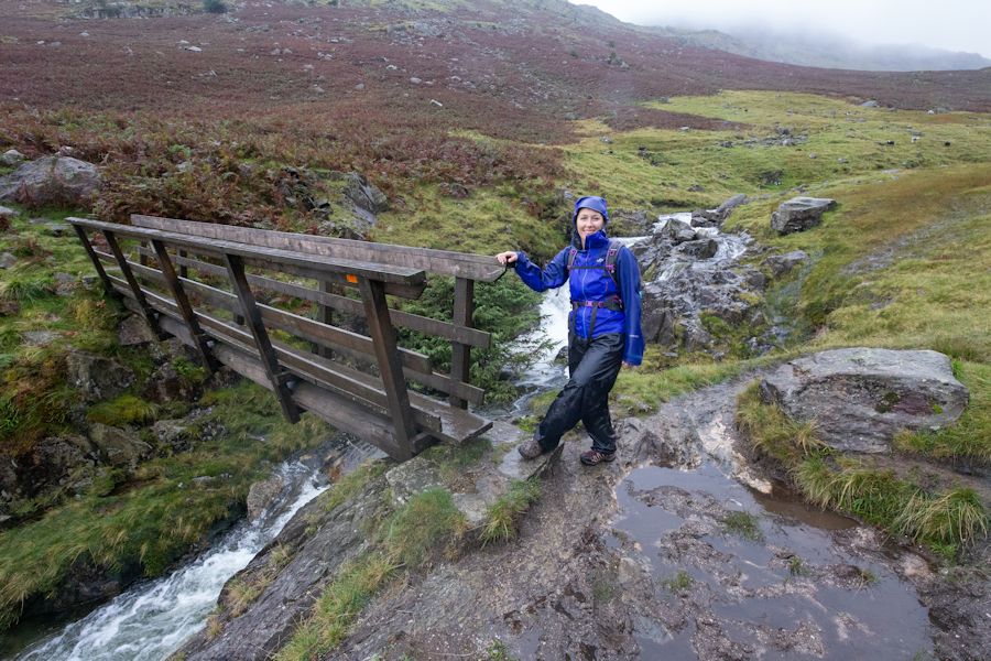 The bridge crossing Greenburn Beck. Somehow still smiling. Well she did marry me yesterday!!!!