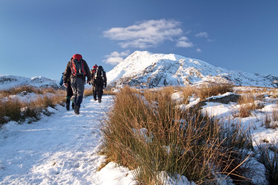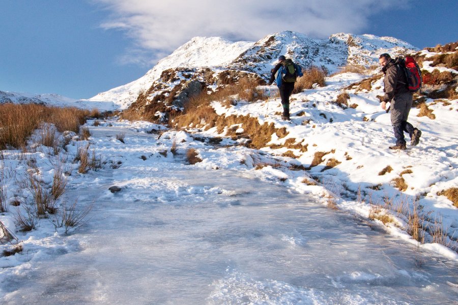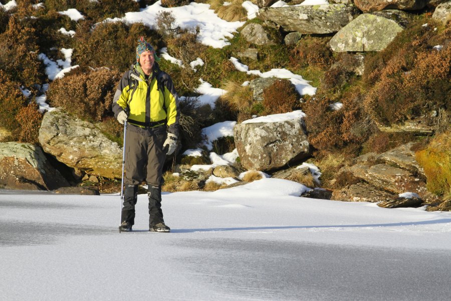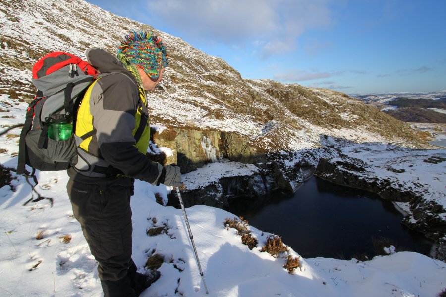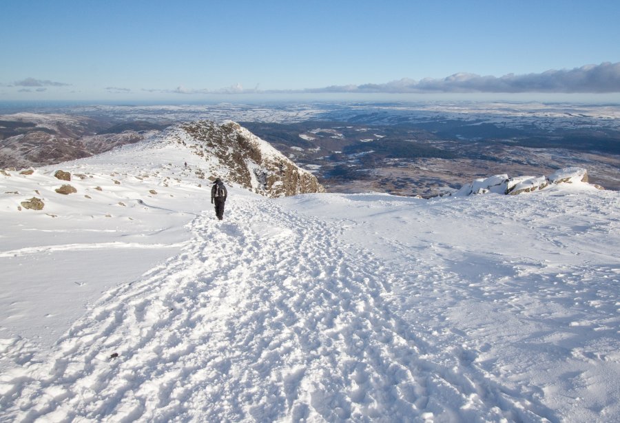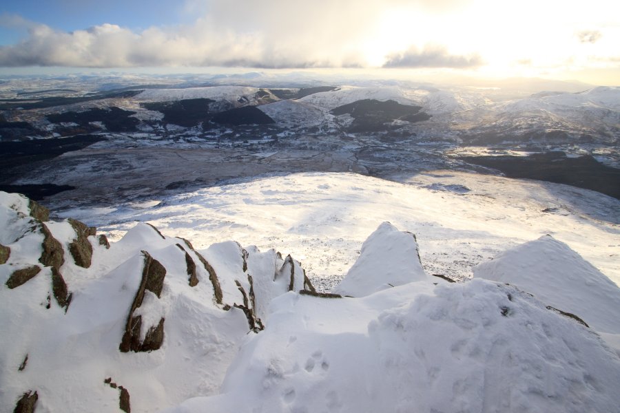 The Daear Ddu ridge in full view and a completely frozen Llyn y Foel to the left