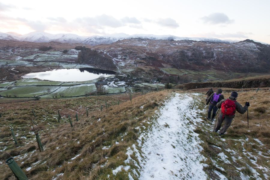 Visiting the Lakes in December could be called a regular occurrence now and it usually follows the same format, 2 days of walking, beer, curry and mince pies. Day 1 is the day we arrive so we usually do a short walk. Today's walk was planned for a small series of hills we had not yet visited. Unfortunately due to the snow and terrain we cut out bleaberry fell and went straight for high seat. Still we used up all the daylight that day and enjoyed trudging through the deep snow covered bracken.