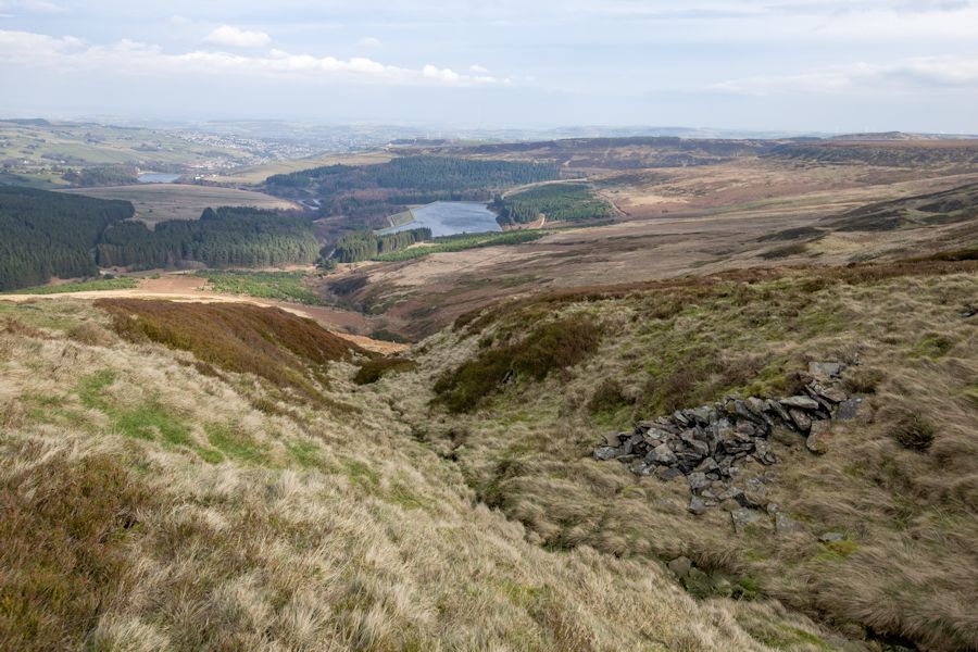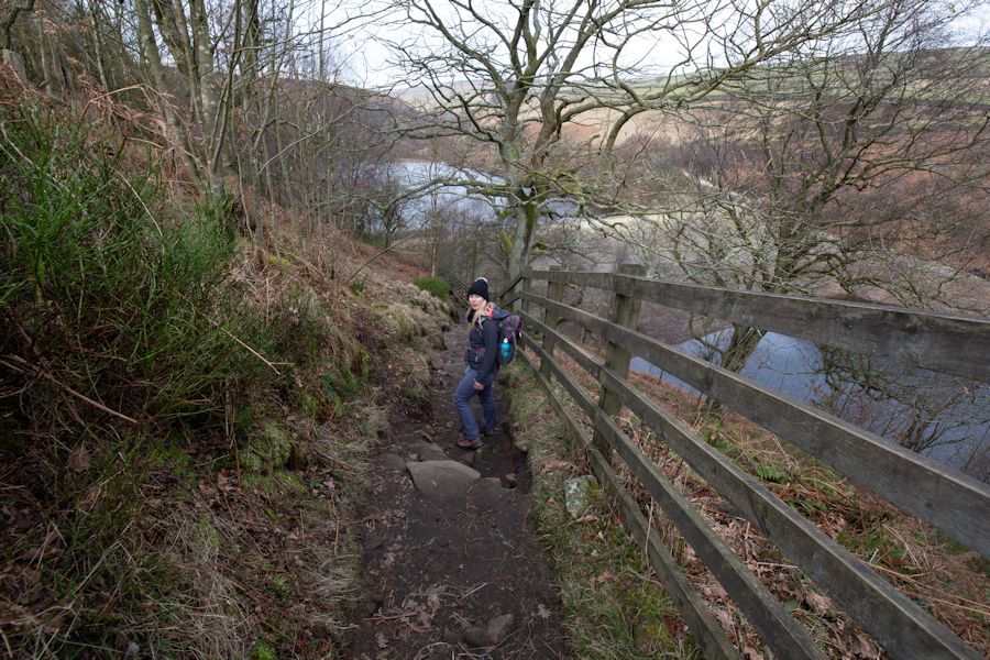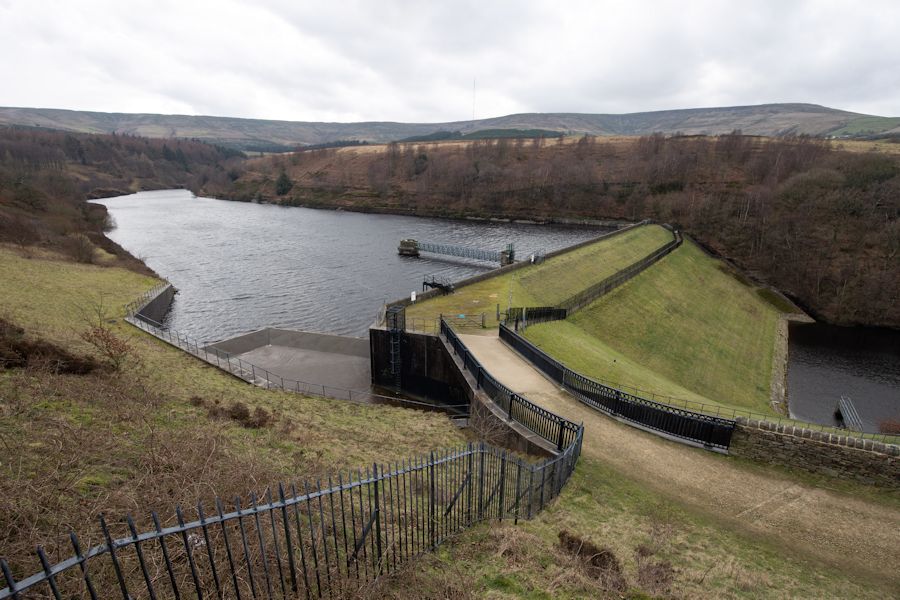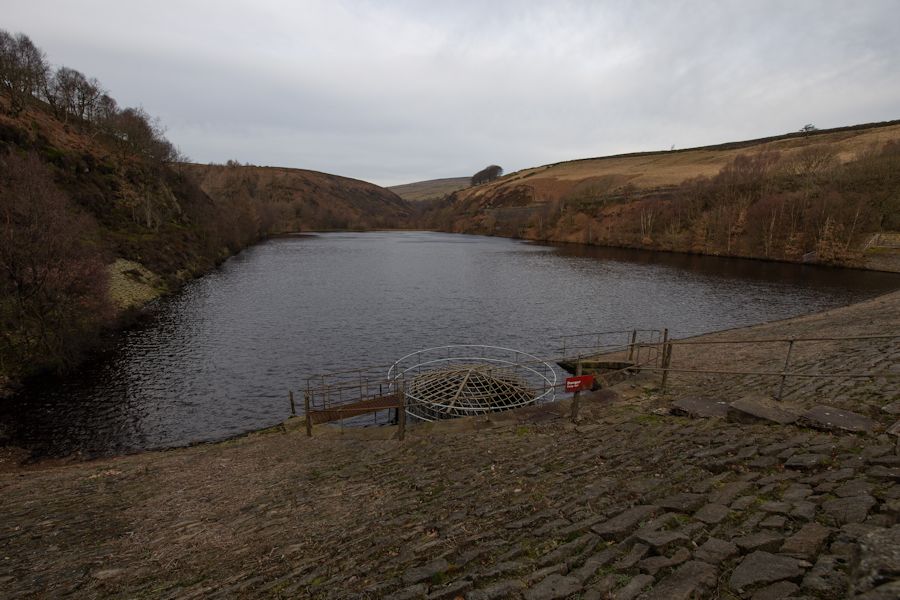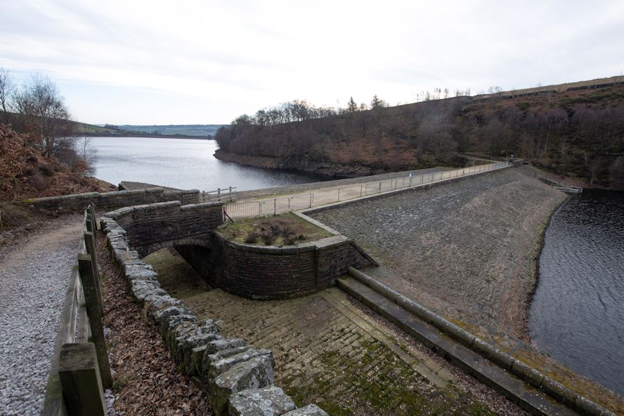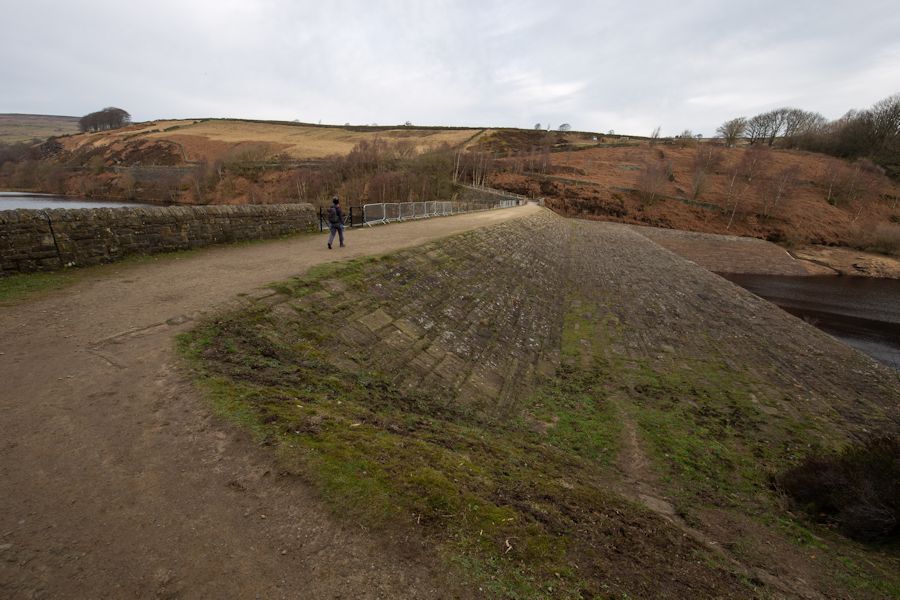 heading down to the dam at bilberry reservoir. google this reservoir and you can read about the disaster than occurred in the 1850s when this dam burst and destroyed homes in the town of holmfirth below.