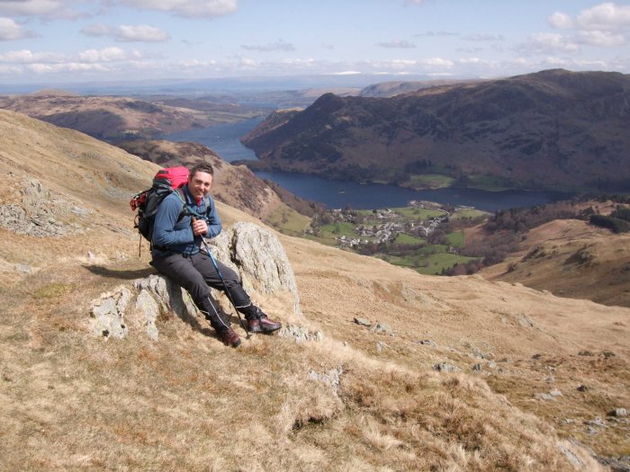 Geordie above Little Cove with Glenridding Below