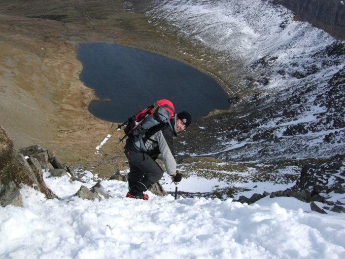 Geordie Descending to Swirral Edge with me close behind