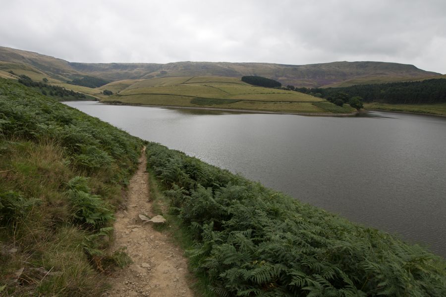 so normally i would follow that track beyond to william clough but today we would cross this small foot bridge and make our way further around the reservoir.