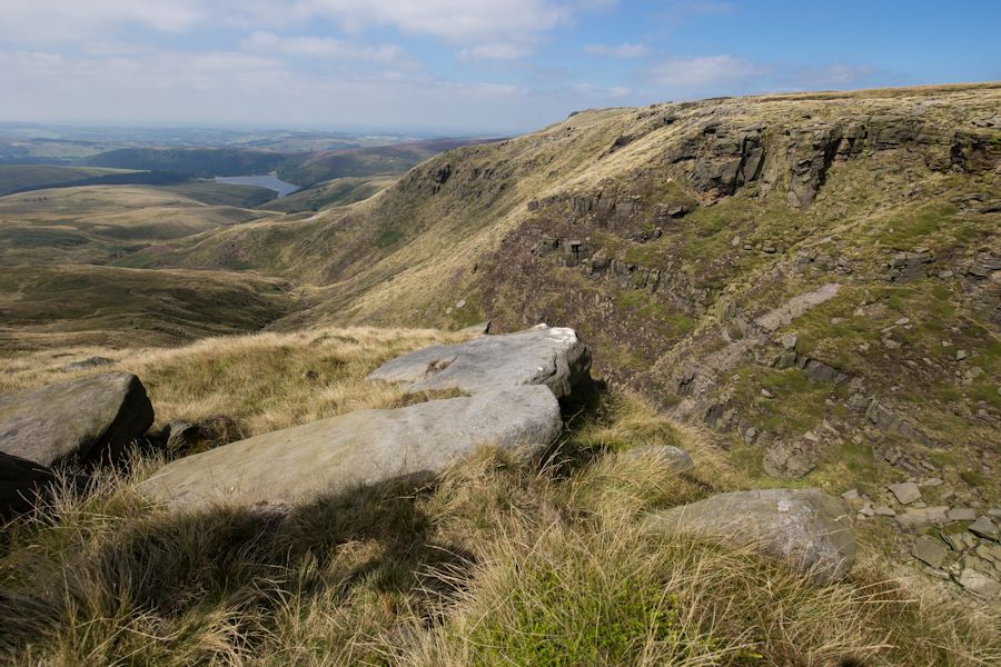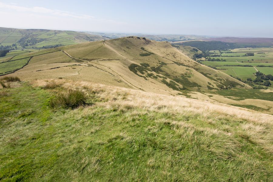 looking out from the top of edale rocks towards swine's back and down towards the vale of edale on the left.