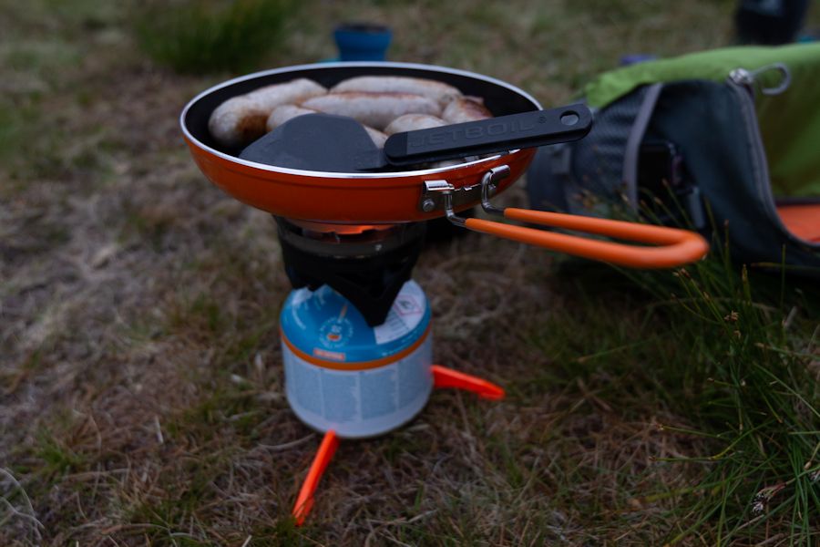 SAUSAGE AND EGG ROLLS. HIGHLY RATE THIS JETBOIL SKILLET. IT REALLY IS NON-STICK!