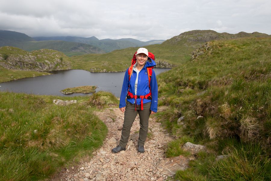 CATHERINE ON ANGLE TARN CRAGS. ANOTHER WAINWRIGHT SUMMITTED.