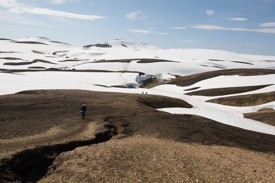 You can see the Hrafntinnusker hut in the background. we still had plenty of white ground to cover