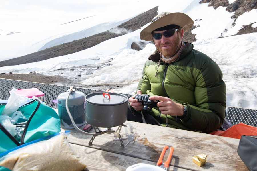 Lunch at Hrafntinnusker. This is our new friend shay.