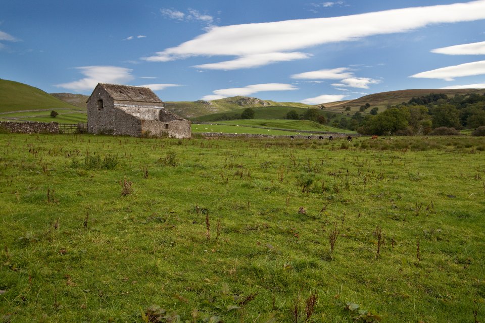 Mires Barn. Cross Field Knotts (centre back)