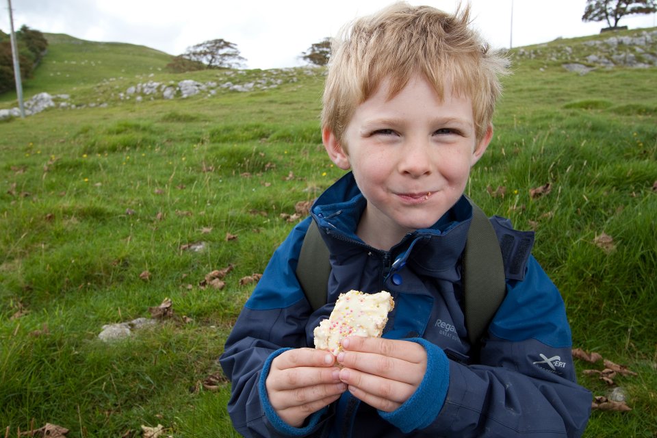 Mmm! Dad's homemade flapjack. Enjoyed at Malham Tarn.