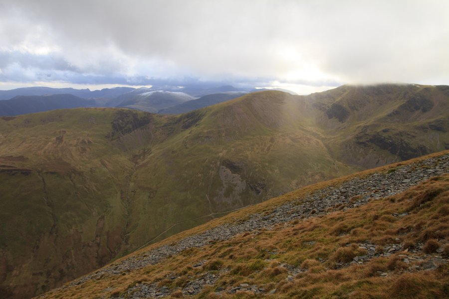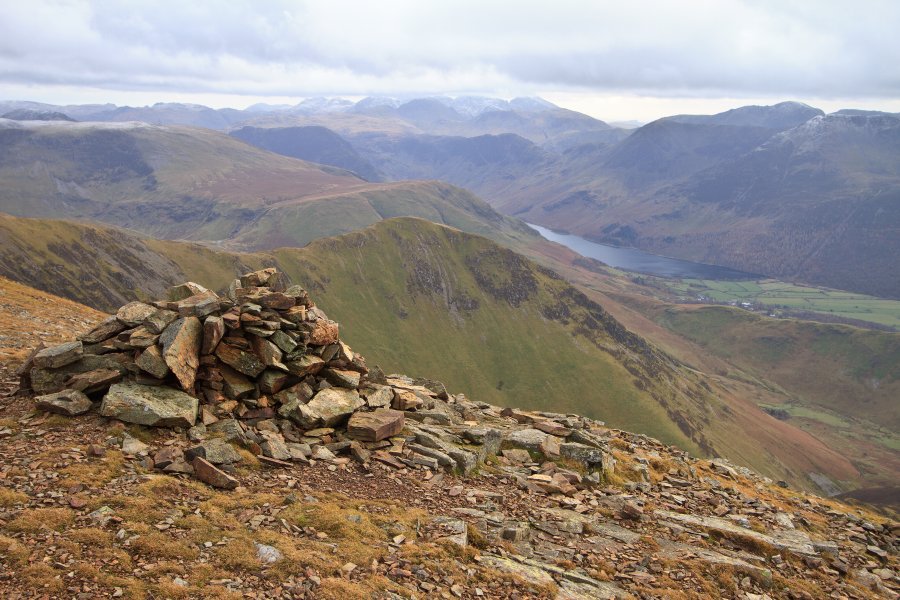 I WENT WITH THE GROUP HEADING FOR GRASSMOOR. IT WAS ONLY A 2KM DETOUR SO WE KNOCKED IT OUT QUITE QUICKLY SO WE COULD CATCH UP WITH THE OTHERS. THE VIEWS FROM BOTH SUMMITS WERE SUPERB! VISIBILITY WAS EXCELLENT, ALTHOUGH LOOKING OVER TO THE SCAFELLS TOPPED WITH CLOUD, IT LOOKED LIKE ANYONE UP THERE WAS HAVING A VERY DIFFERENT DAY.