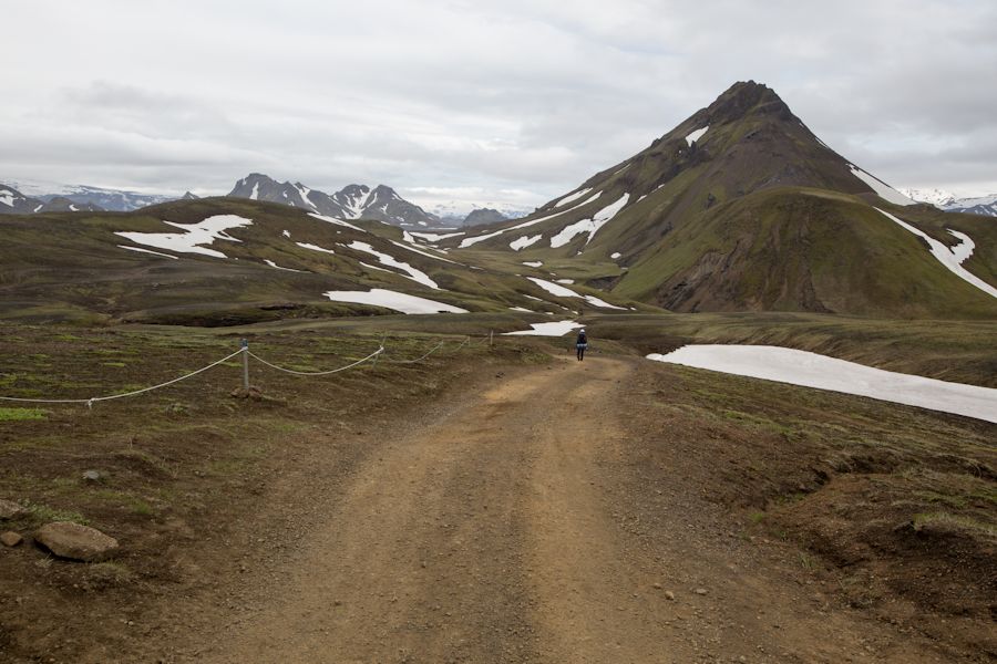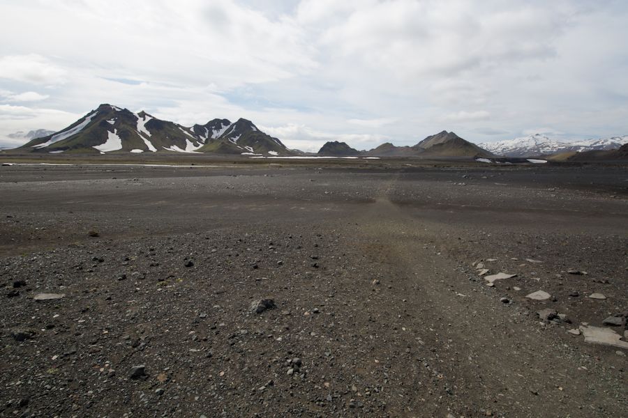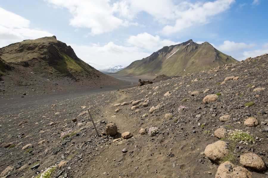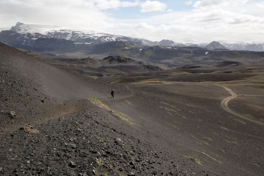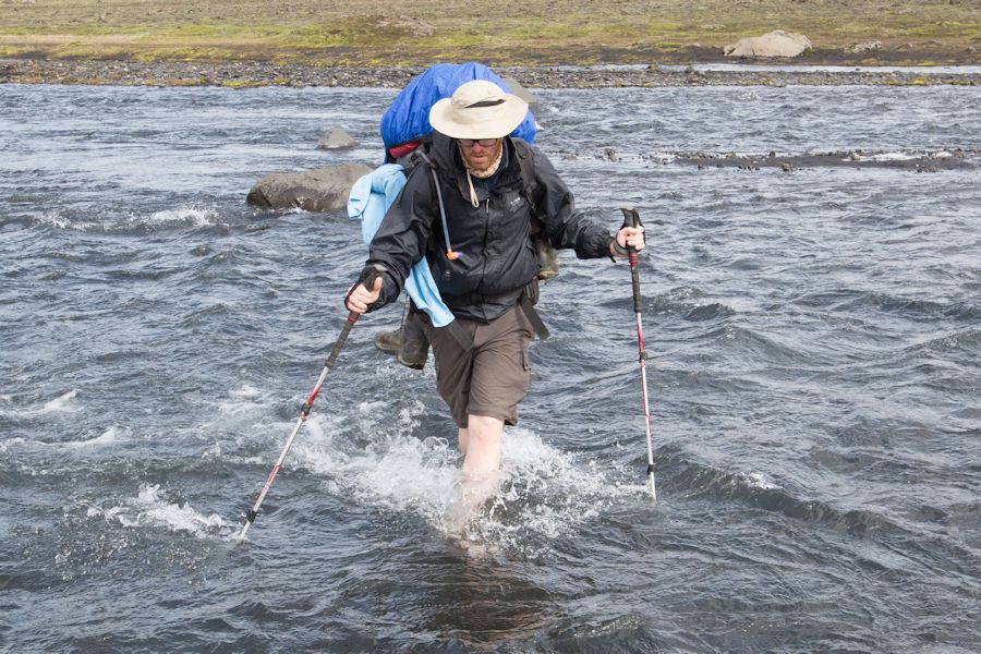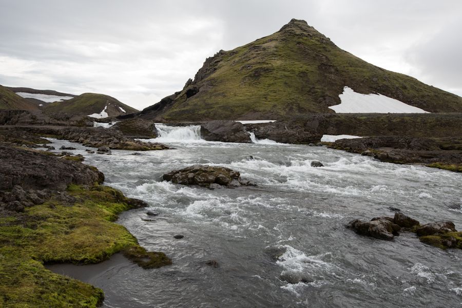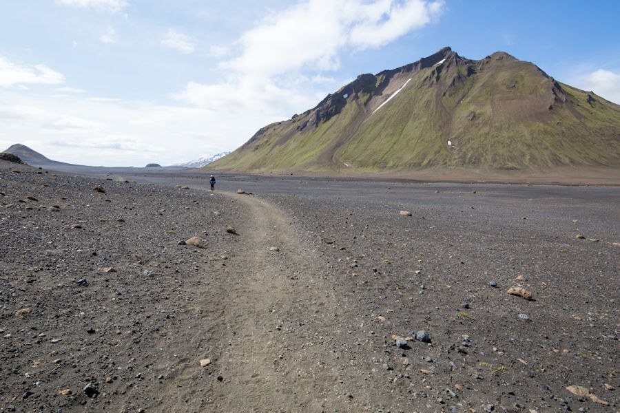 Already one river crossing down and passing the cone shaped Stórasúla.