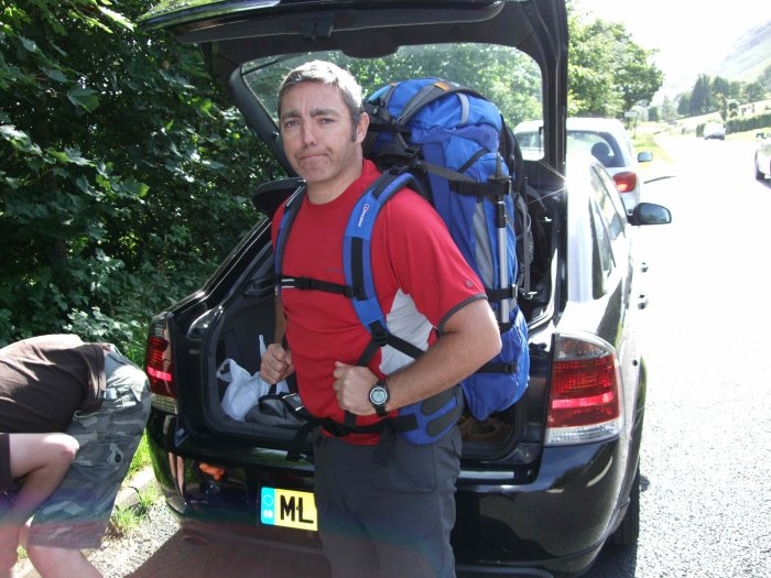 Parked up at the side of the A66 i noticed Geordie's bag was as big as him