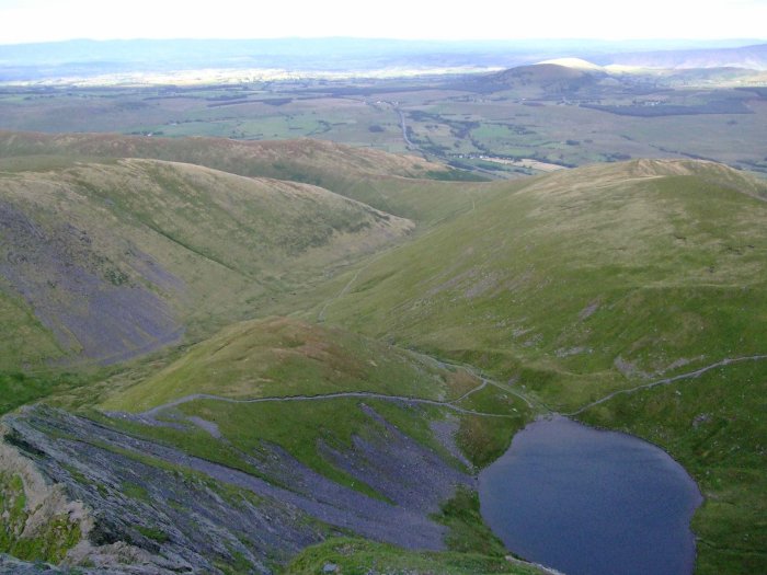 Looking down at Scales Tarn and our tents. Left:White Horse Bent - Right:Scales Fell