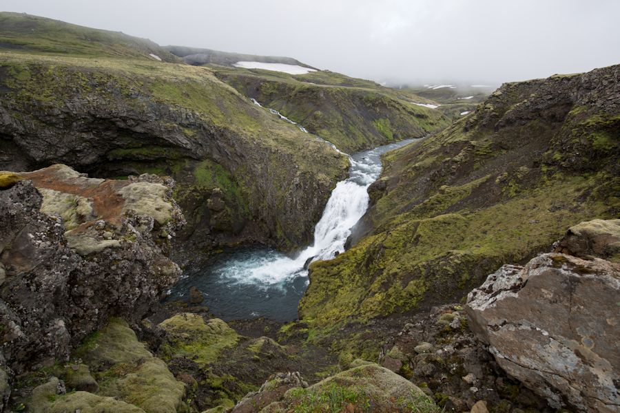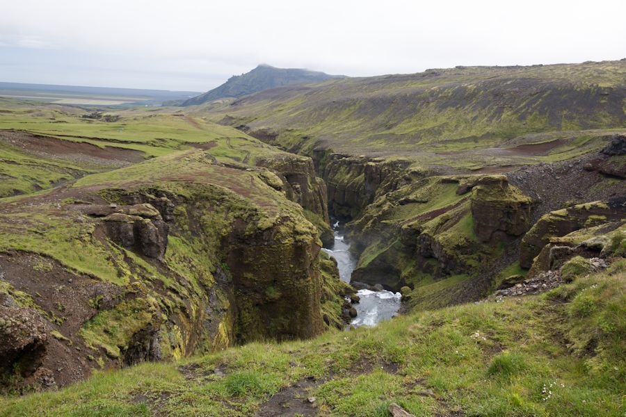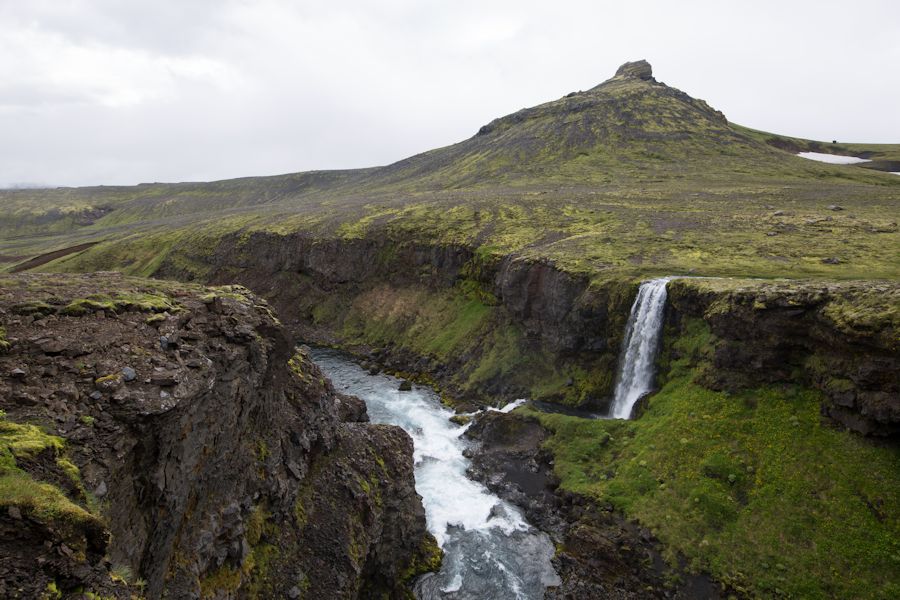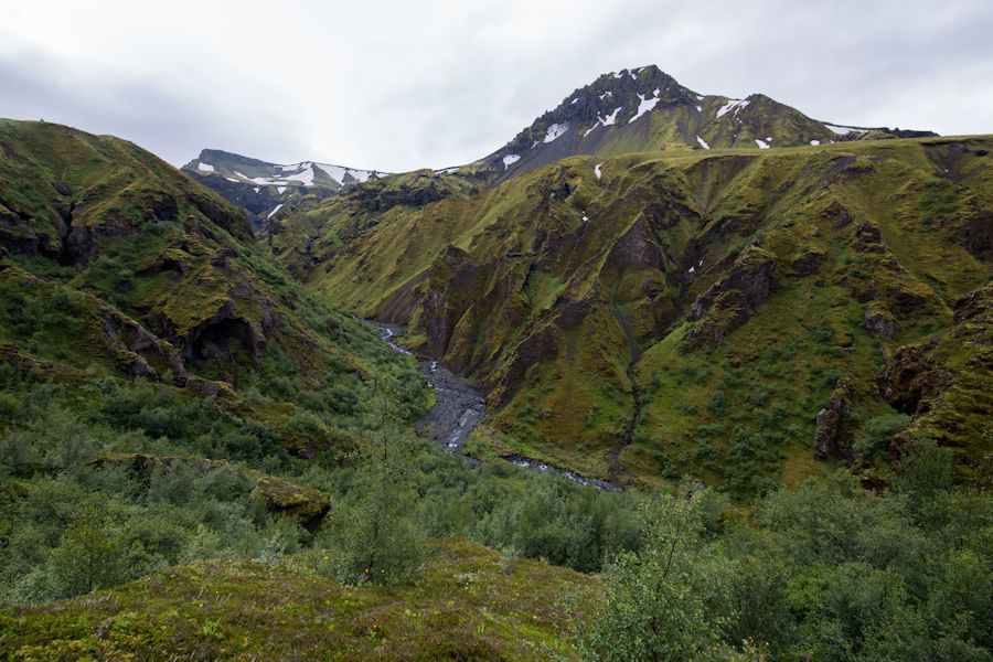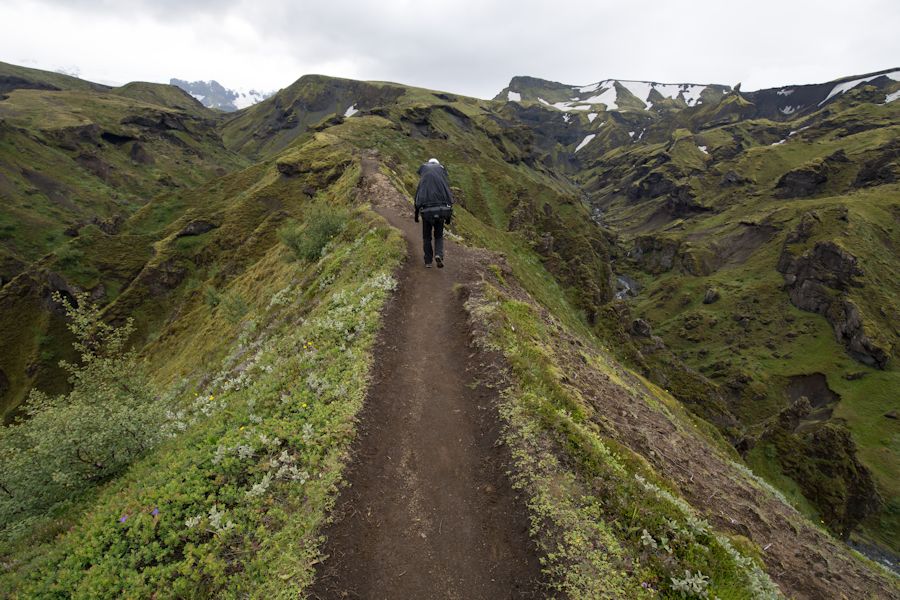 a stunning valley in Goðaland as we traverse a narrow track