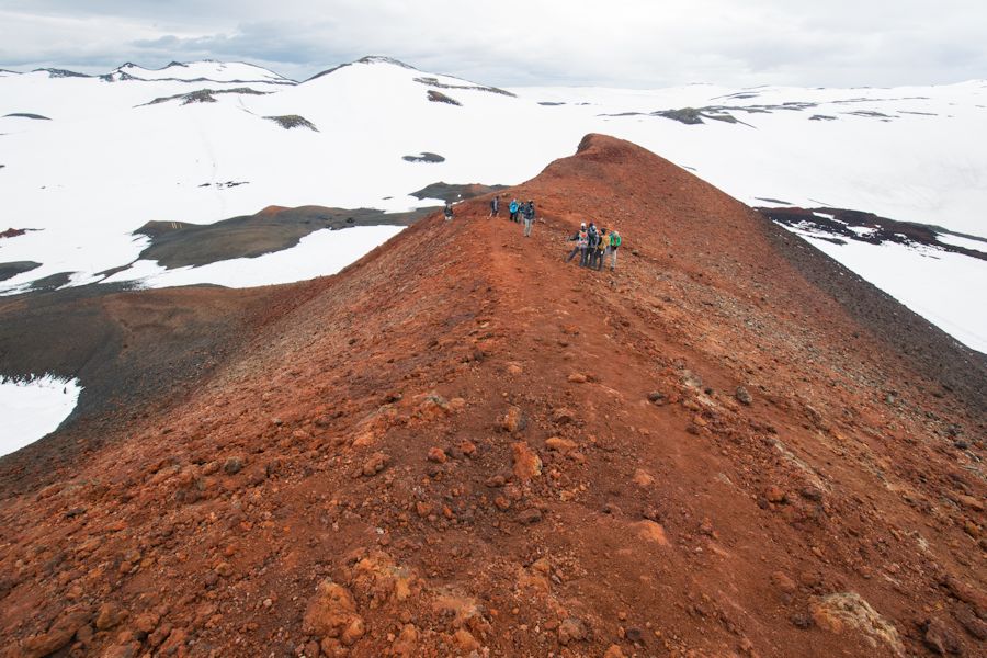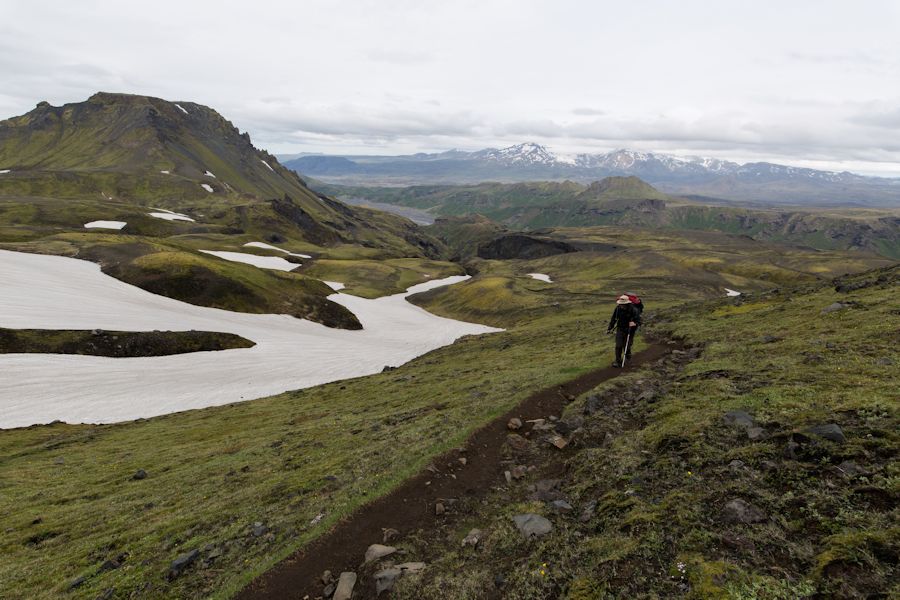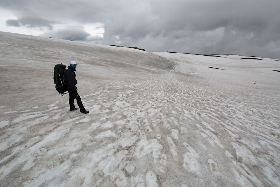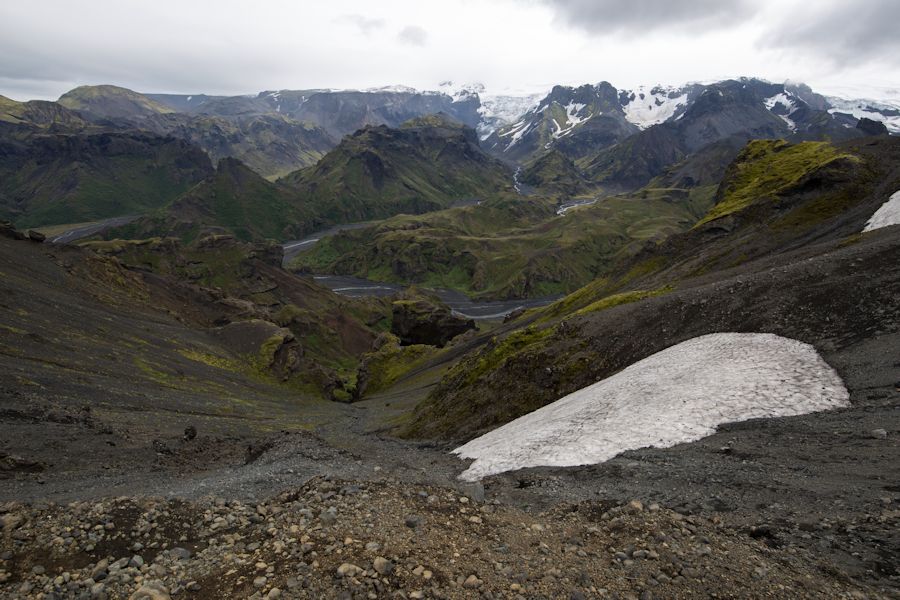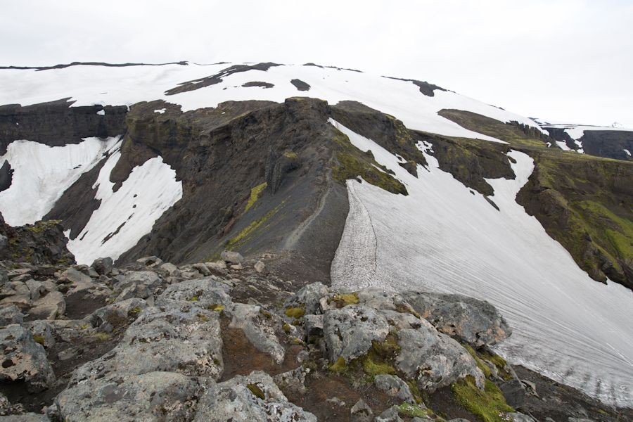 Here it is, the last day of trekking, an extension beyond the laugavegur on to the Fimmvörðuháls Pass. everyone since 2010 has heard of Eyjafjallajokull when it erupted and grounded air traffic across europe. there is great footage of the eruption on youtube. so it was pretty intense to think that we would be passing beside it today and also passing between two glaciers. we also knew that it was going to be a long day. weary walkers back at ÞÓRSMÖRK HAD WARNED US THAT THERE WAS A LOT OF SNOW UP THERE MAKING IT ALL THAT MORE TIRING AND COMBINED WITH A HEIGHT OF 1093M TO GET OVER HE KNEW WE HAD TO SET OFF EARLY. IN THE END IT TOOK US 11 HOURS BUT WITH A NICE STOP OFF AT ONE OF THE HUTS TO BREW UP AND REPLENISH OUR WATER.