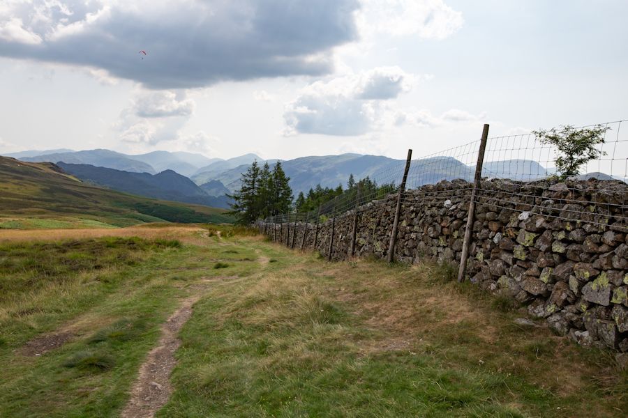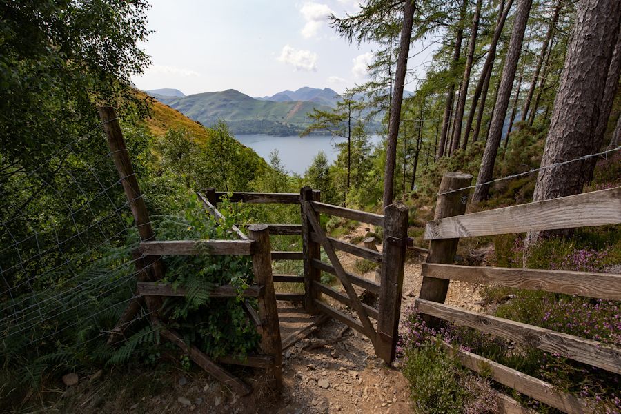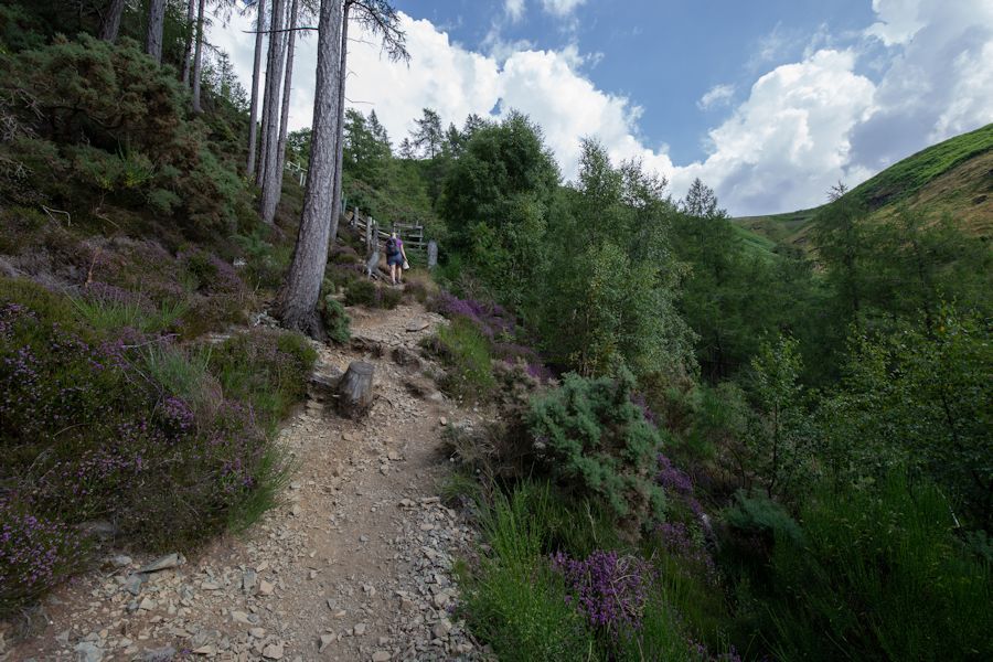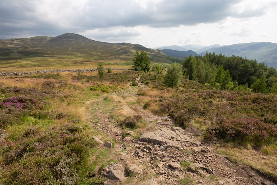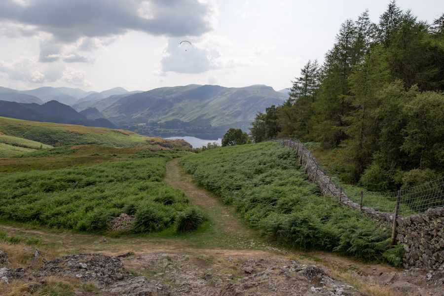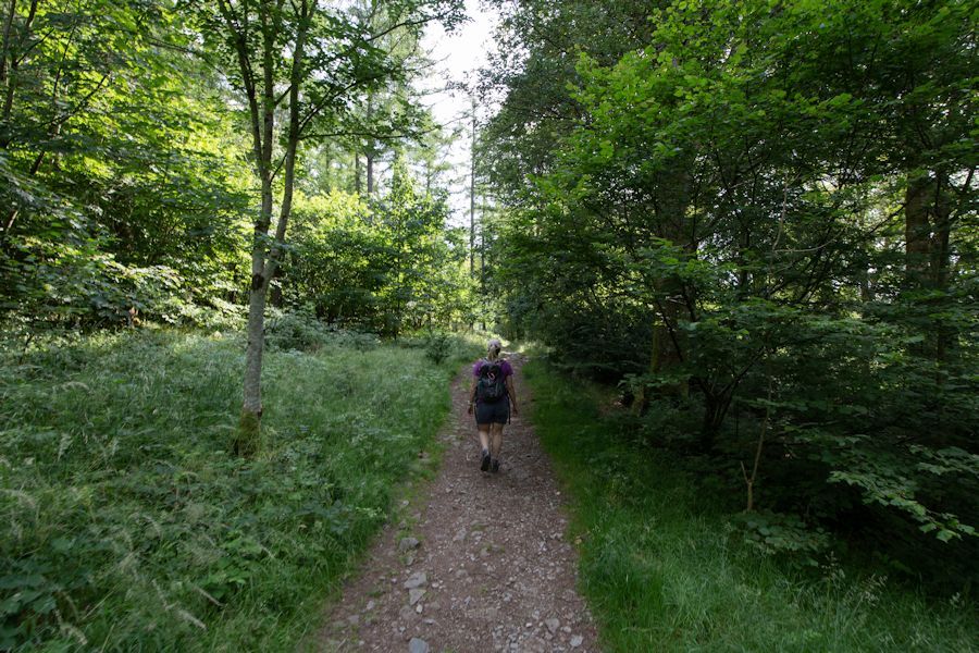 looking back along the path from the woods which takes us up0 to walla crag