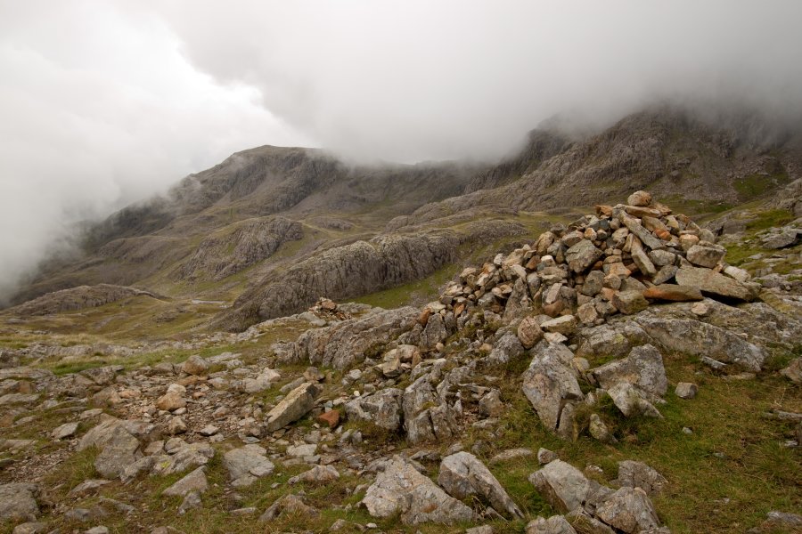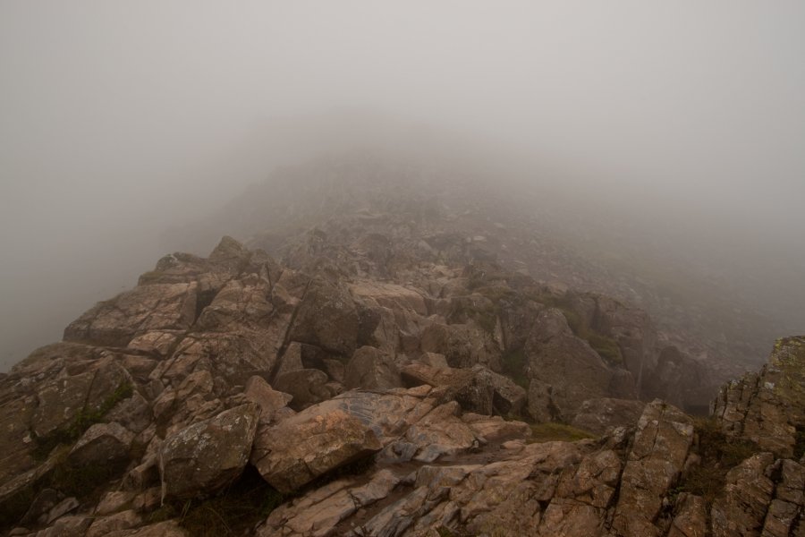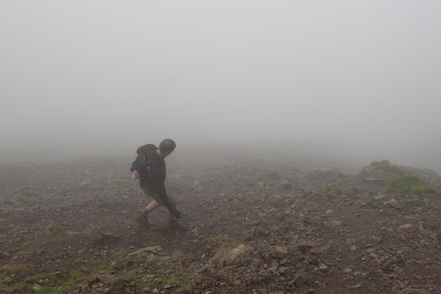The final clamber up to the summit of Scafell Pike. It's there somewhere.