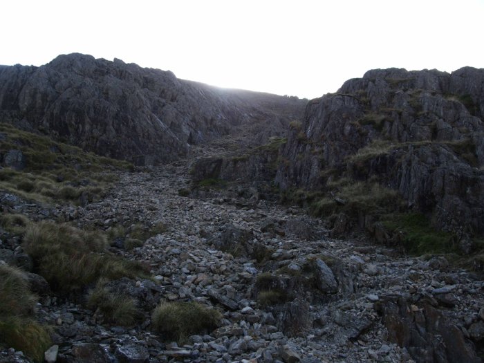 Scree slope leading to the summit of Glyder Fawr