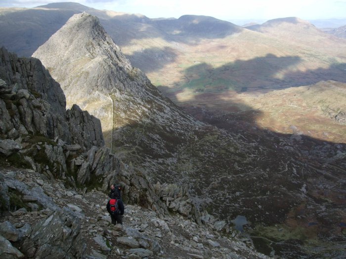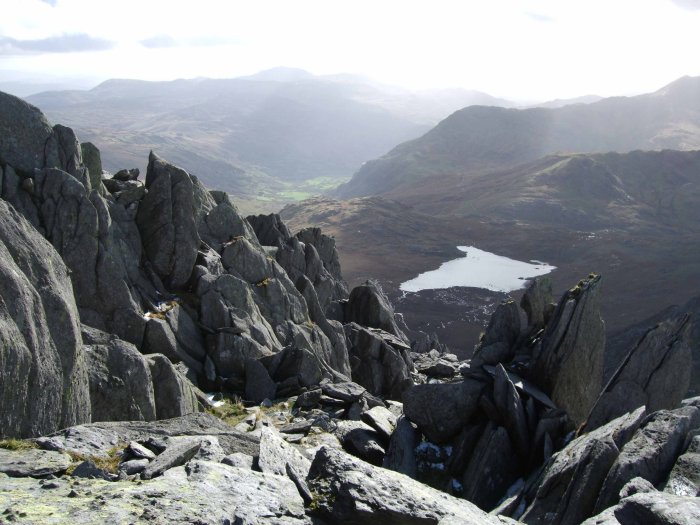 Back left is the summit of Glyder Fach and a fun obstruction
