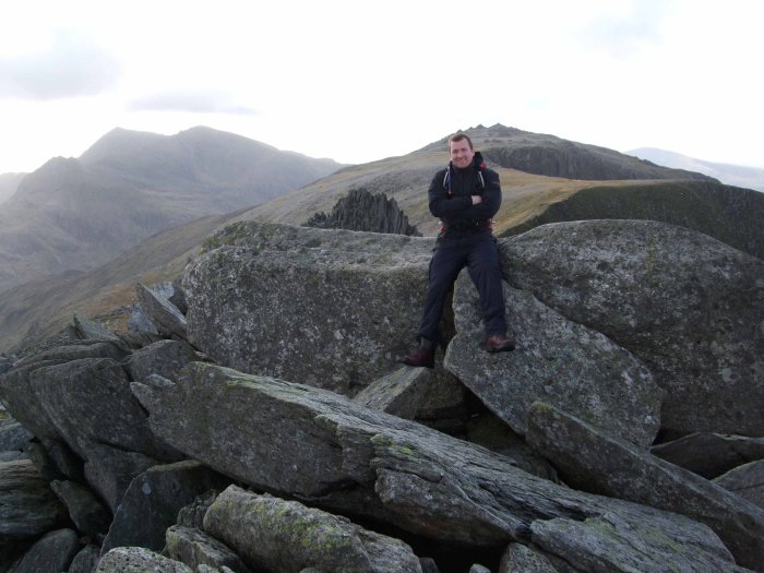 Geordie at the summit of Glyder Fawr