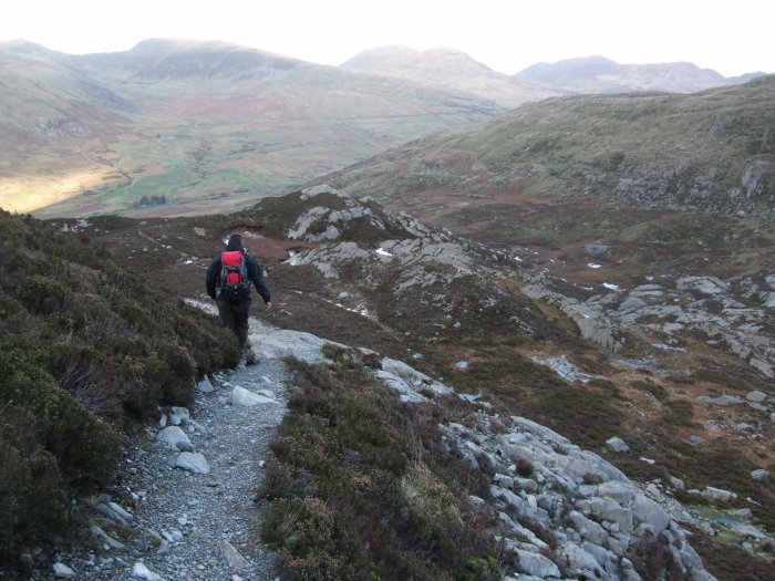 following the path along Cwm Tryfan
