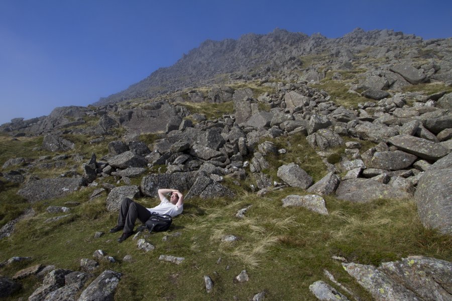 look at poor alan's face. we were all feeling the heat as we scrambled up the daear ddu ridge