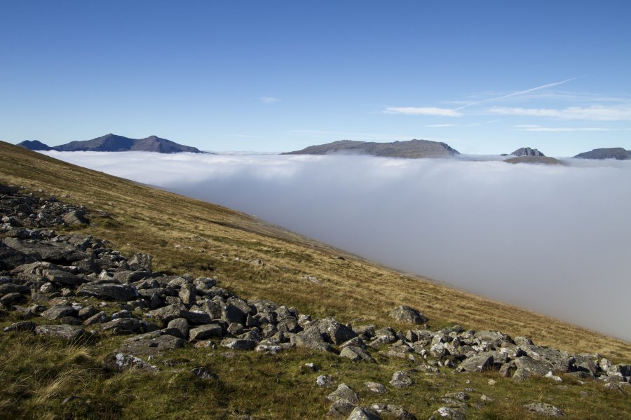 could the fine weather streak have ended? usually moel siabod stands proudly from this position. we could barely see it this morning