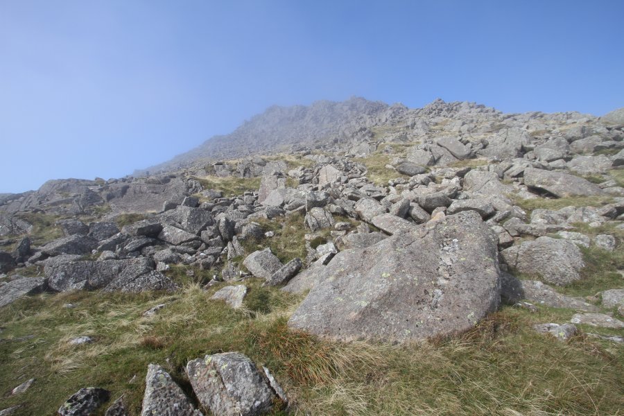 following the not always obvious track up the ridge. you dont really need to always folllow it though, as there are plenty of fun scrambling options to be conquered