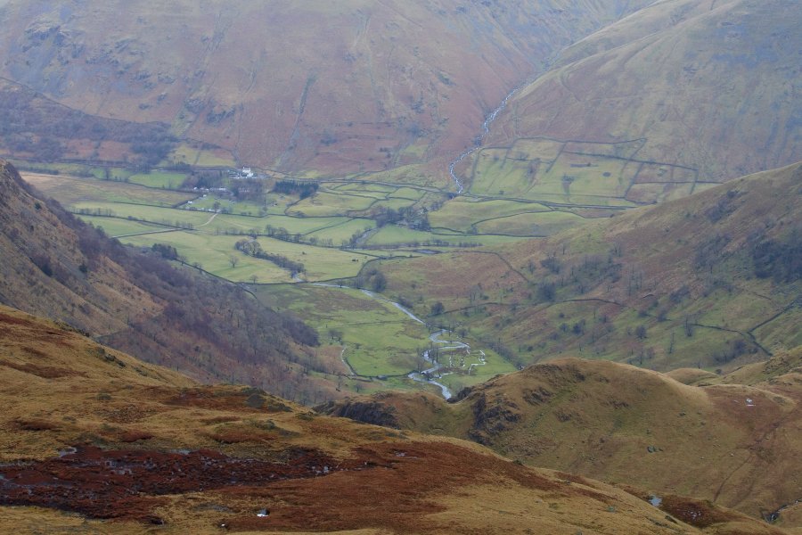 Looking down into Deepdale. The sky clearing over Place Fell