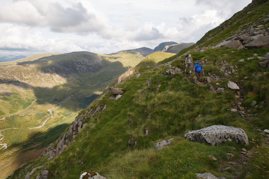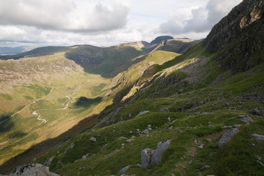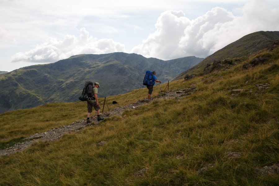 the route through Mosedale and along black sail pass was gradual and a decent path all the way up to looking stead. apart from a couple of mountain bikers we didn't see anyone else. It's always nice to feel like you have the mountain to yourselves. approximately 700ft beyond looking stead comes the choice of two routes. the direct route straight up to the summit or cutting right and joining the high level route.